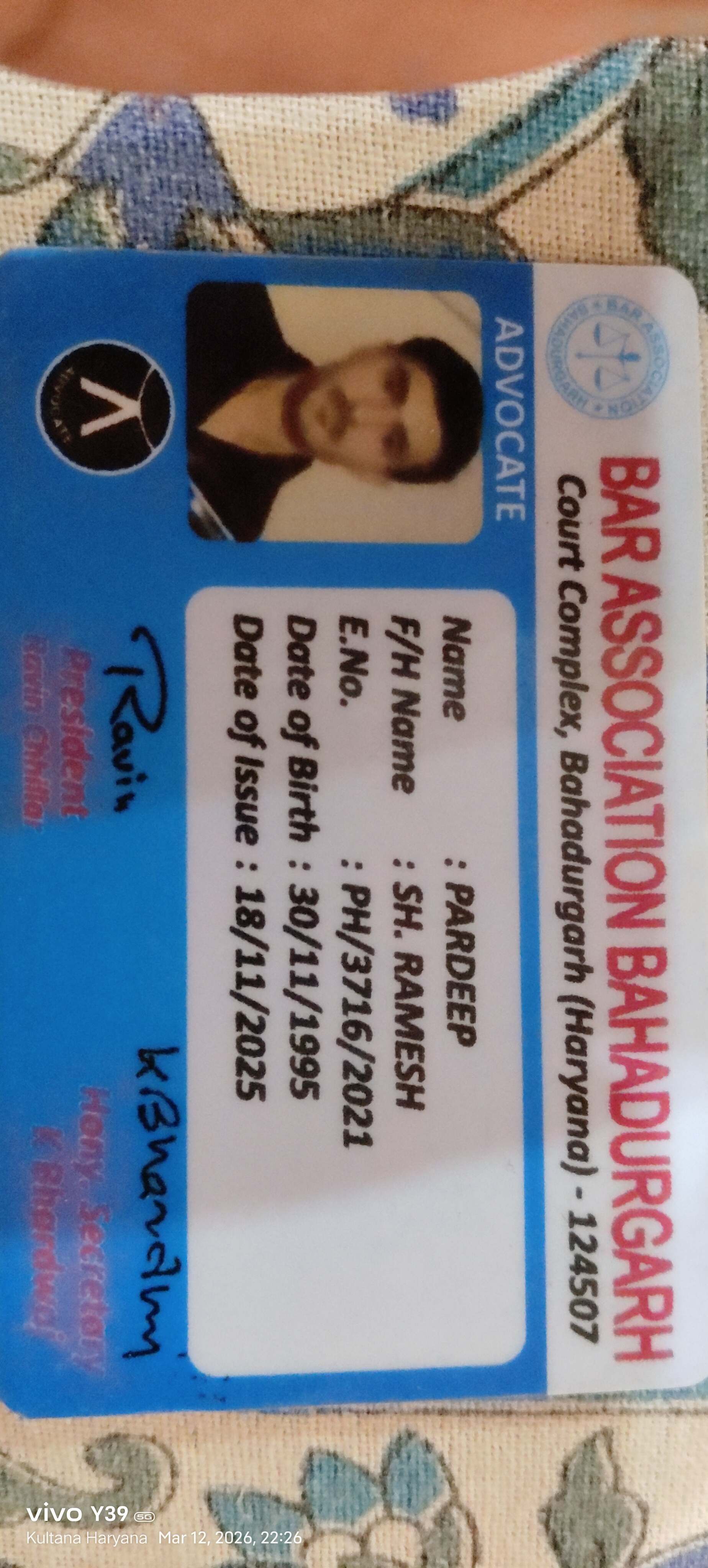 Chamber no 12 Western Wing Tis hazari courts delhi 110054 110054 |
