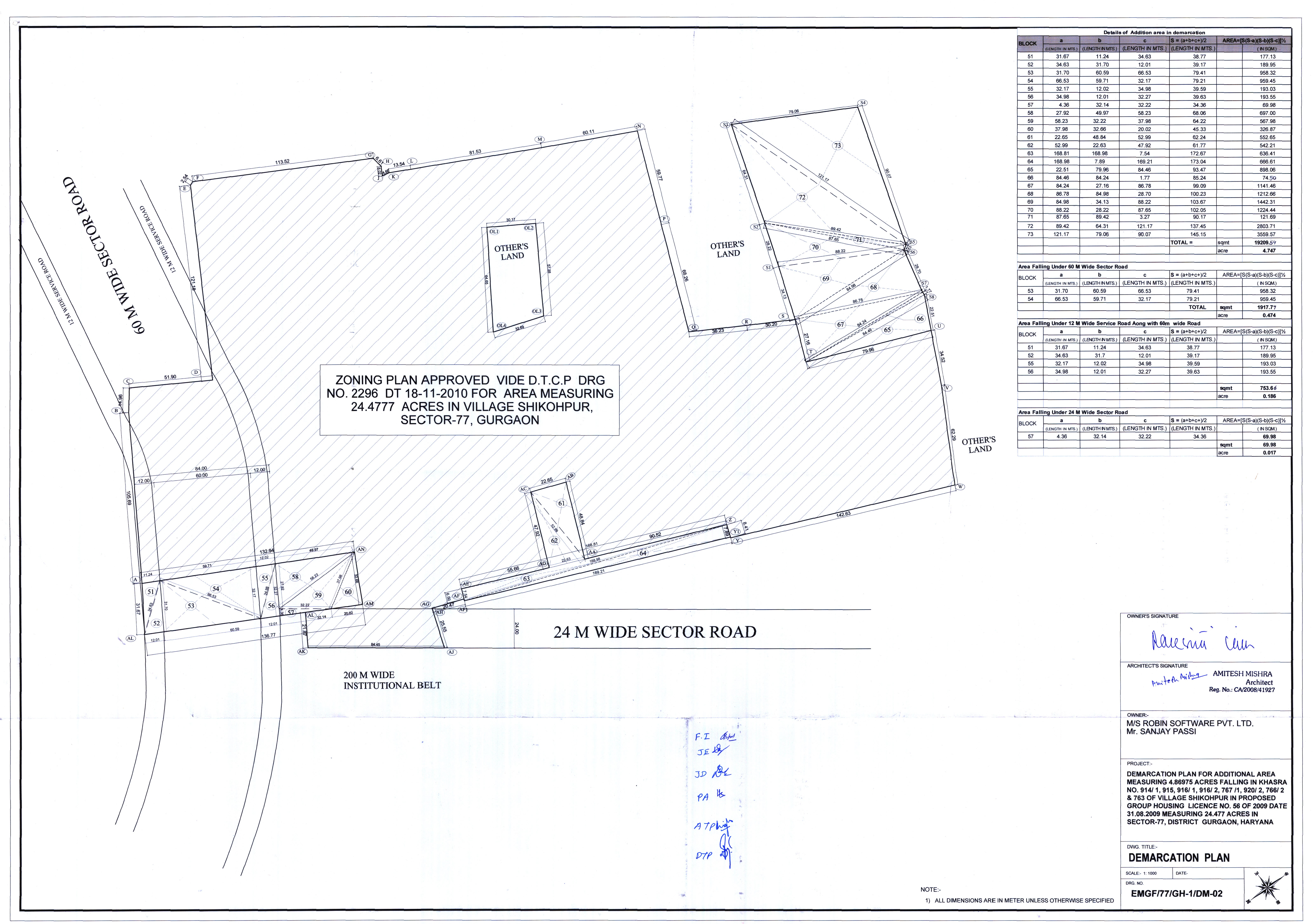 Remarks: Yet to be prepared / Submitted to HUDA, Town & Country Planning Department/ as per project report etc. (Annex relevant documents showing costing details etc. in folder C)