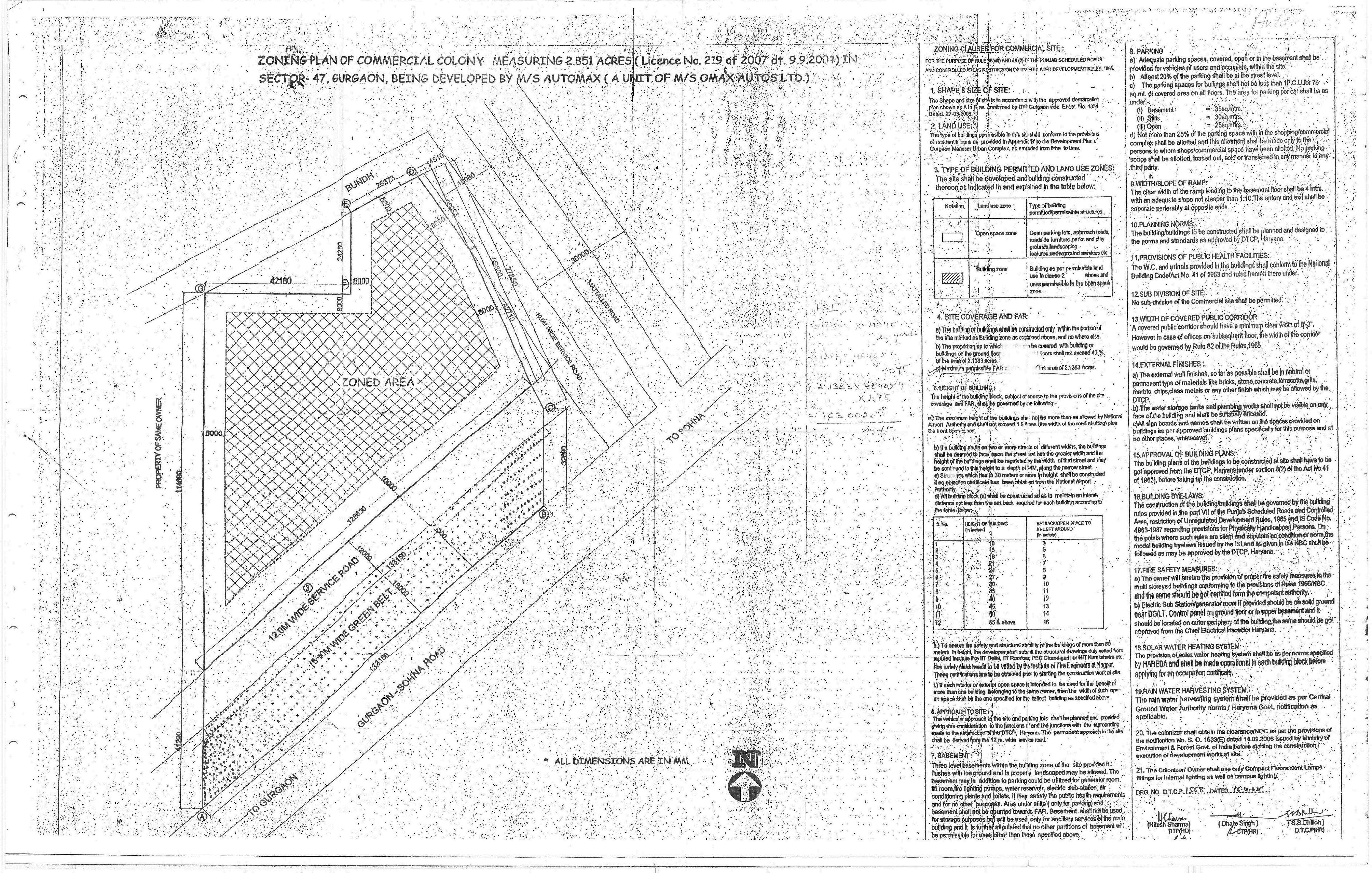 Remarks: Yet to be prepared / Submitted to HUDA, Town & Country Planning Department/ as per project report etc. (Annex relevant documents showing costing details etc. in folder C)