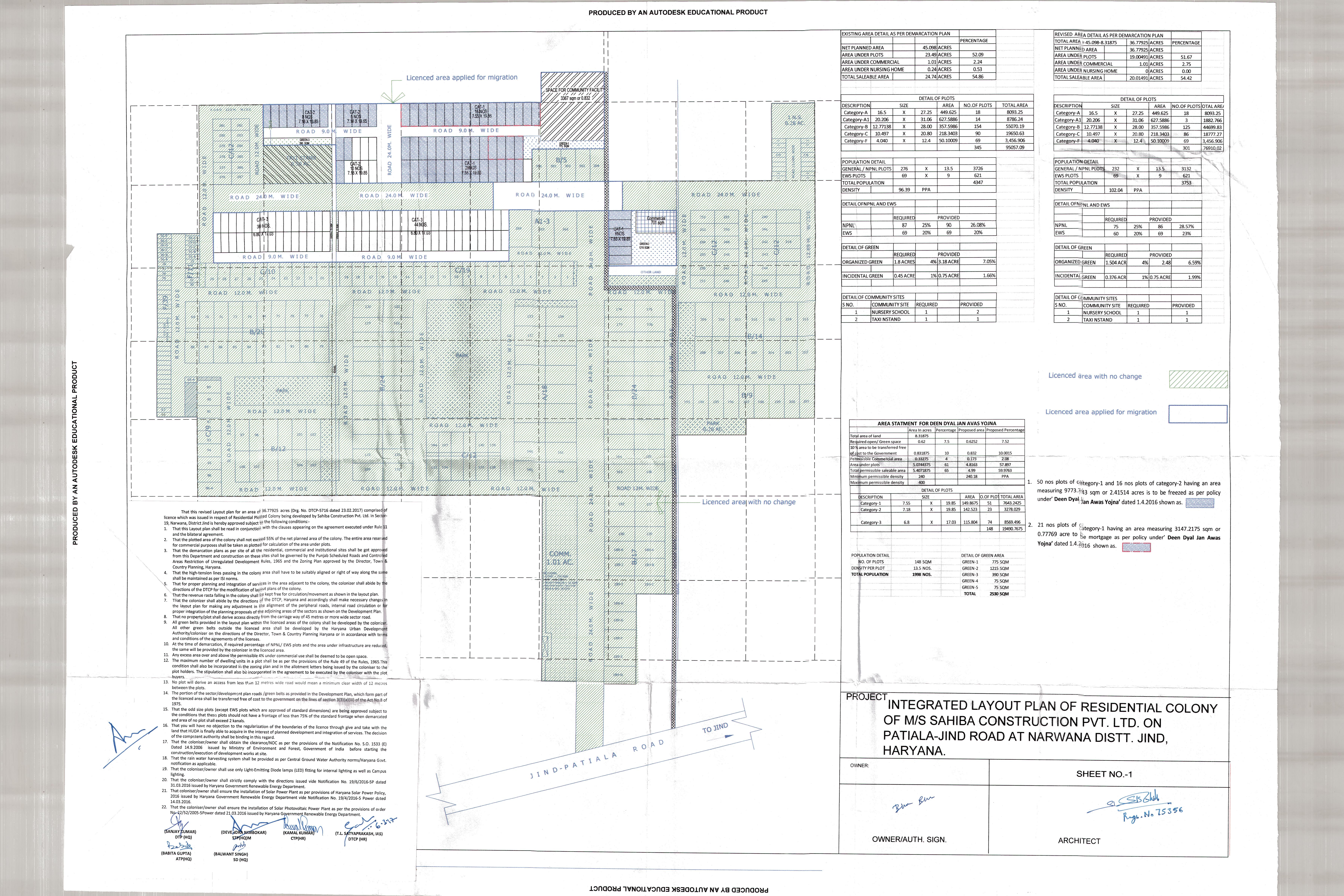 Remarks: Yet to be prepared / Submitted to HUDA, Town & Country Planning Department/ as per project report etc. (Annex relevant documents showing costing details etc. in folder C)