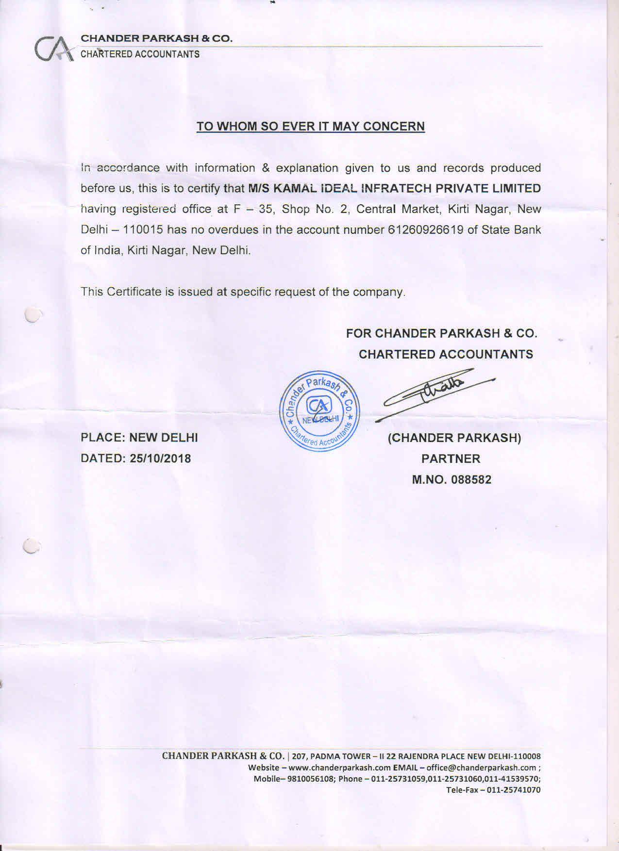 Address B-47 CONNAUGHT PLACE NEW DELHI
