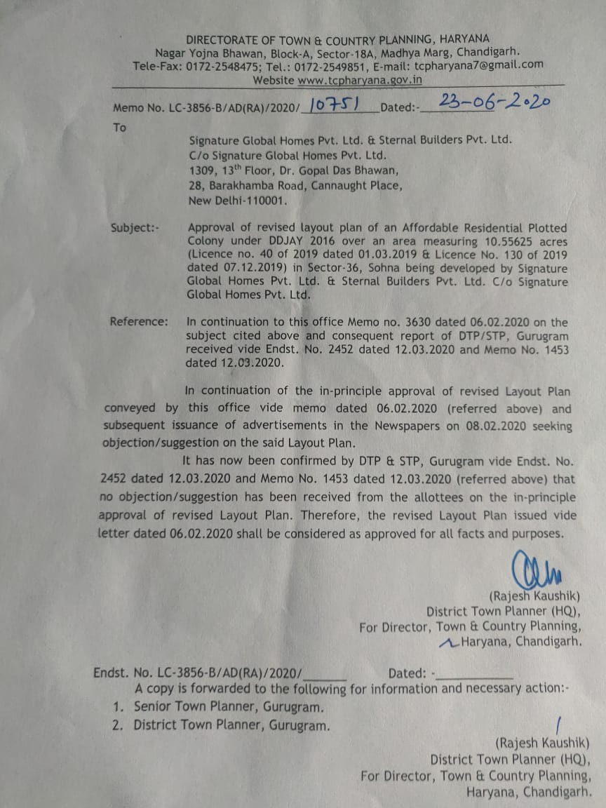 Remarks: Yet to be prepared / Submitted to HUDA, Town & Country Planning Department/ as per project report etc. (Annex relevant documents showing costing details etc. in folder C)