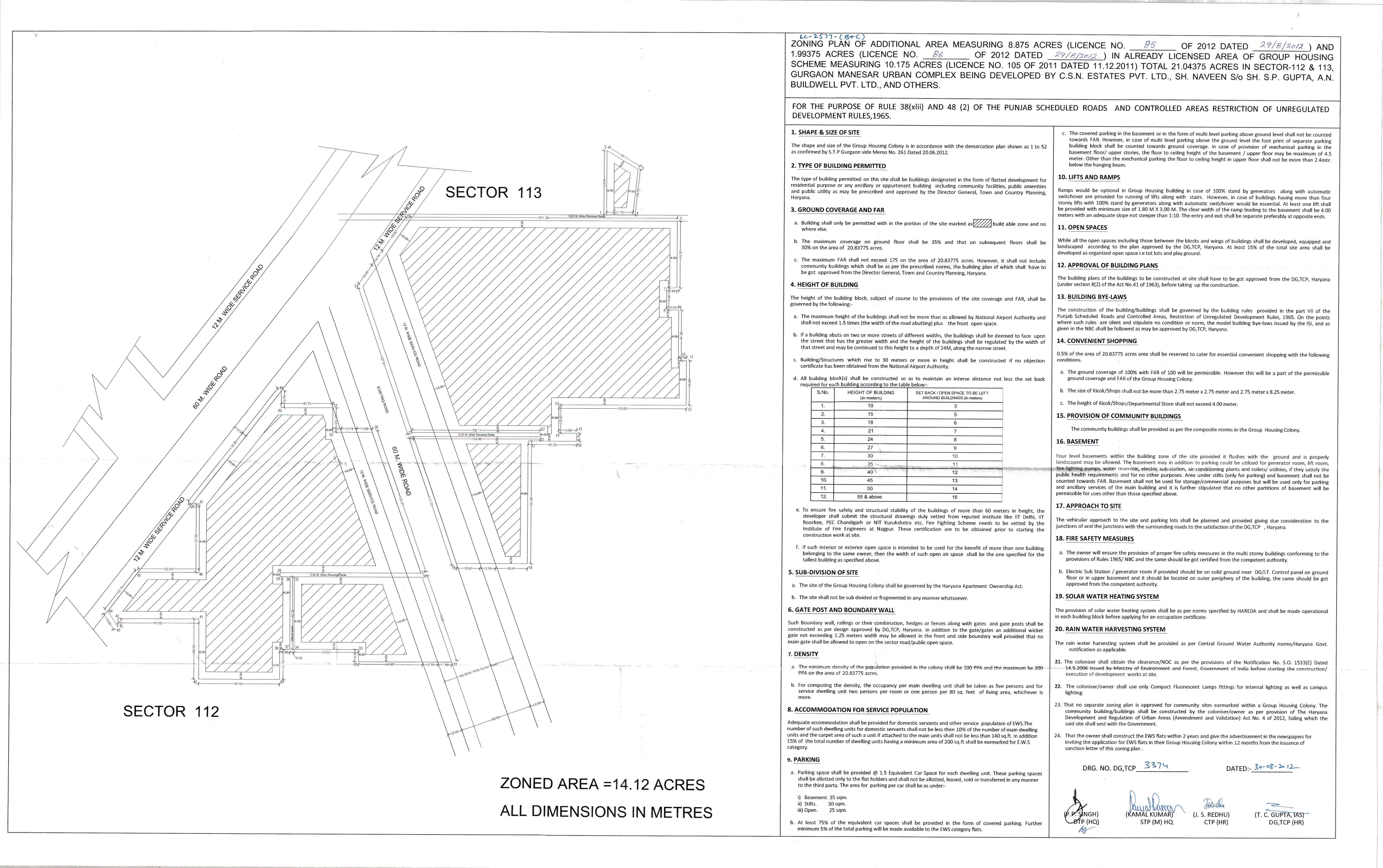 Remarks: Yet to be prepared / Submitted to HUDA, Town & Country Planning Department/ as per project report etc. (Annex relevant documents showing costing details etc. in folder C)