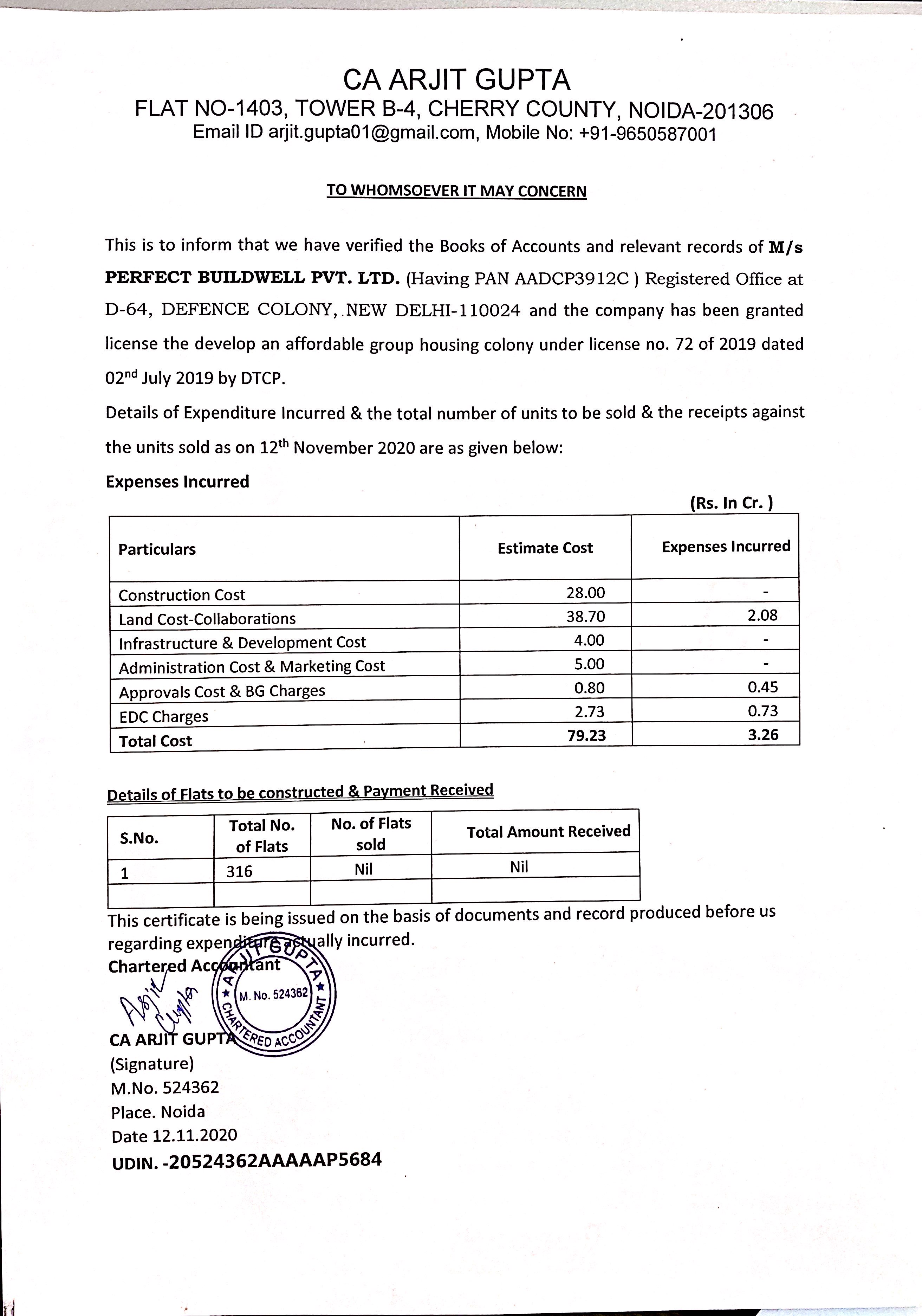 Remarks: Yet to be prepared / Submitted to HUDA, Town & Country Planning Department/ as per project report etc. (Annex relevant documents showing costing details etc. in folder C)