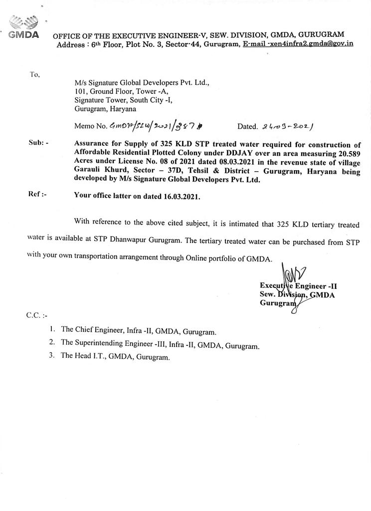 V. STP TREATED WATER GMDA/SEW/2021/387