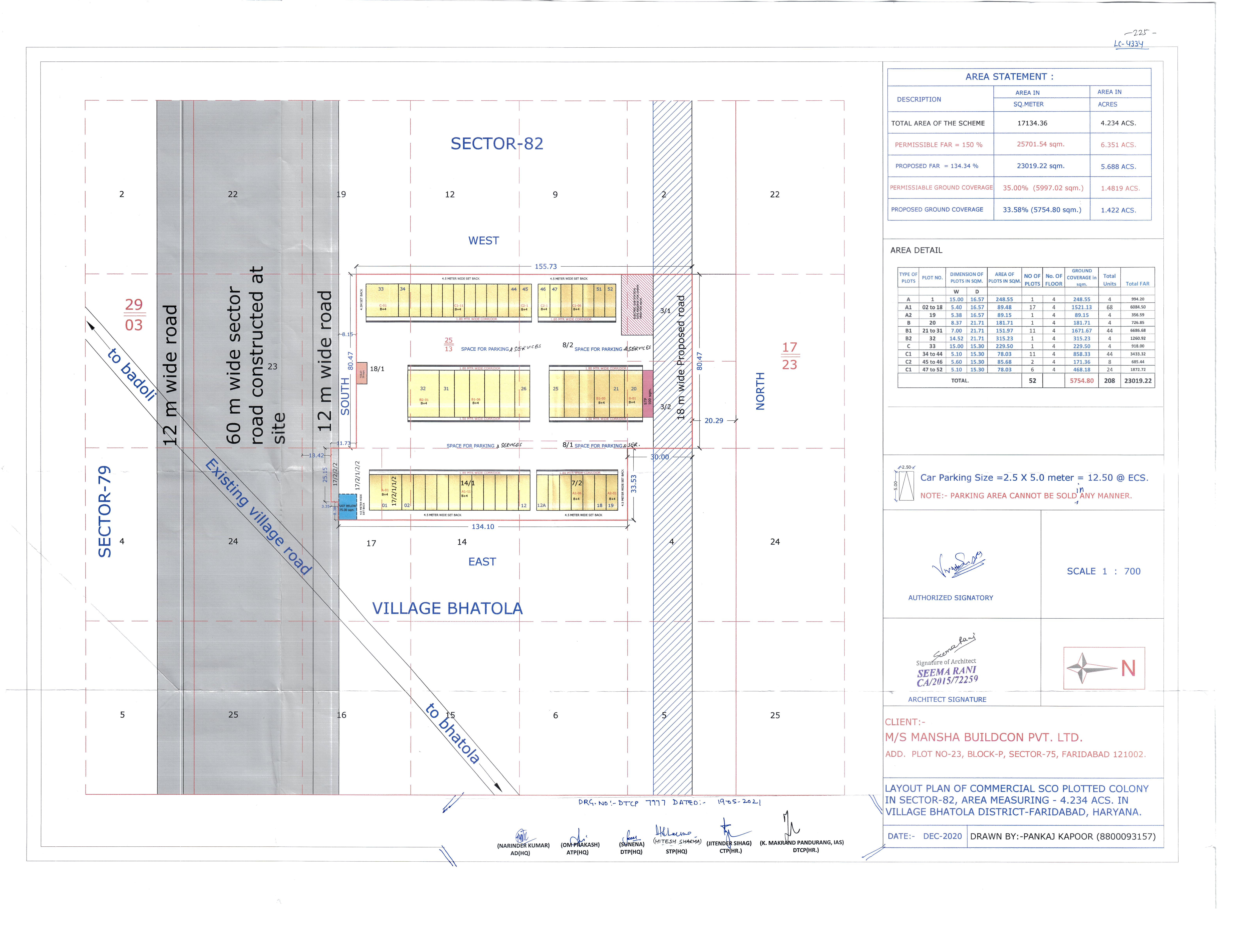 Remarks: Yet to be prepared / Submitted to HUDA, Town & Country Planning Department/ as per project report etc. (Annex relevant documents showing costing details etc. in folder C)
