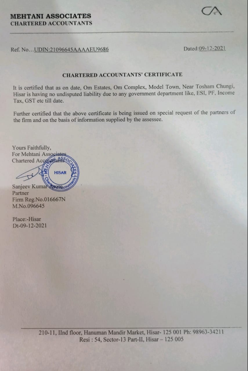 OM COMPLEX NEAR TOSHAM CHUNGI, TOSHAM ROAD, NEW MODEL TOWN, HISAR.