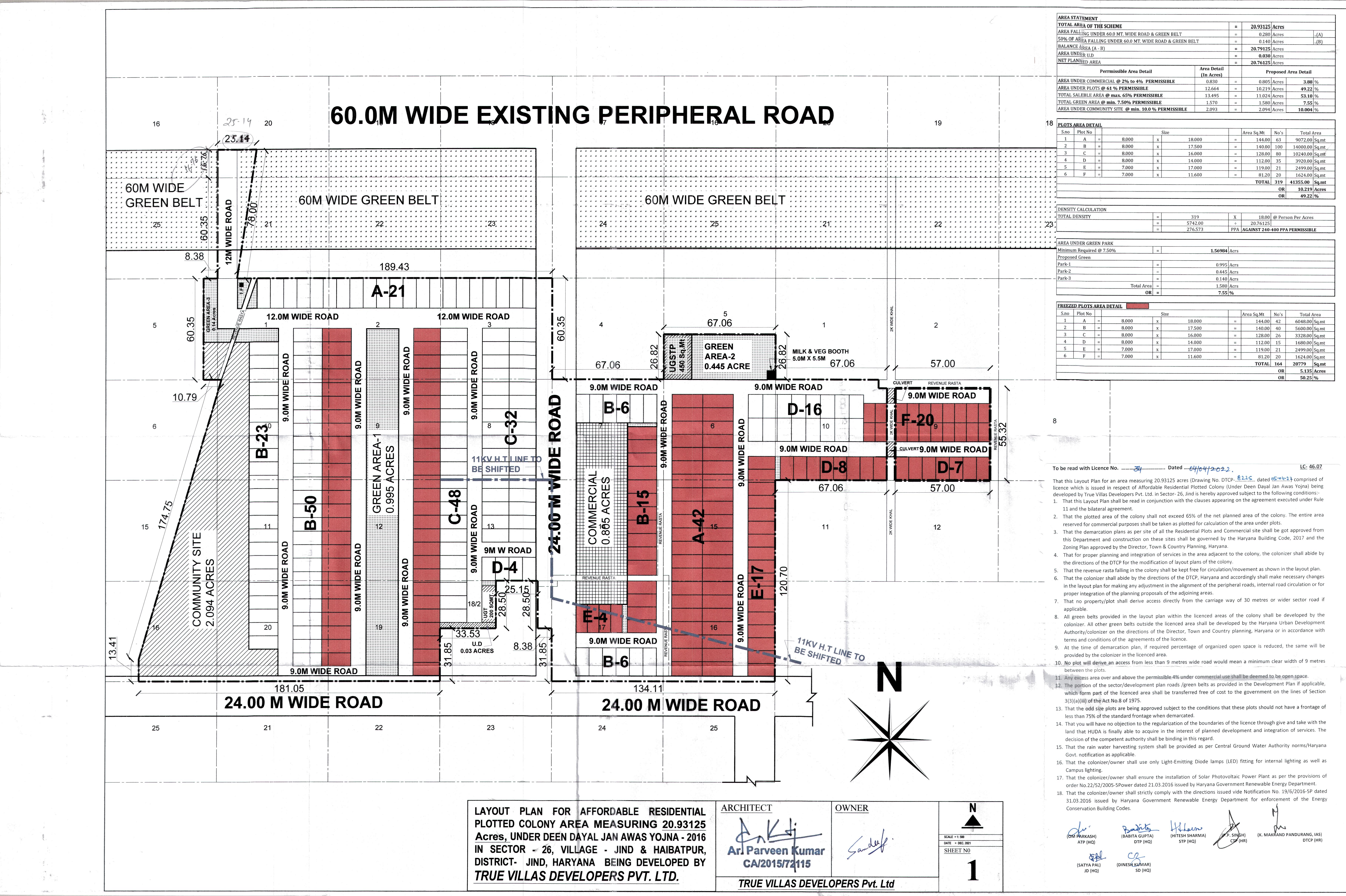 Remarks: Yet to be prepared / Submitted to HUDA, Town & Country Planning Department/ as per project report etc. (Annex relevant documents showing costing details etc. in folder C)
