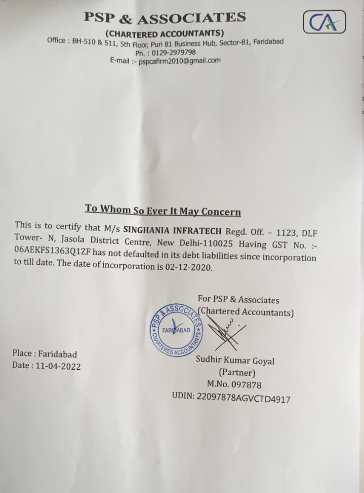 Remarks: Yet to be prepared / Submitted to HUDA, Town & Country Planning Department/ as per project report etc. (Annex relevant documents showing costing details etc. in folder C)