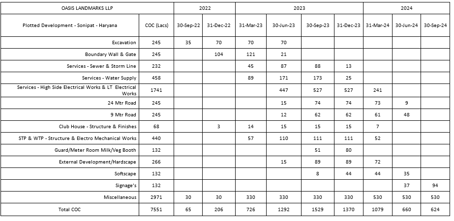 Remarks: Yet to be prepared / Submitted to HUDA, Town & Country Planning Department/ as per project report etc. (Annex relevant documents showing costing details etc. in folder C)