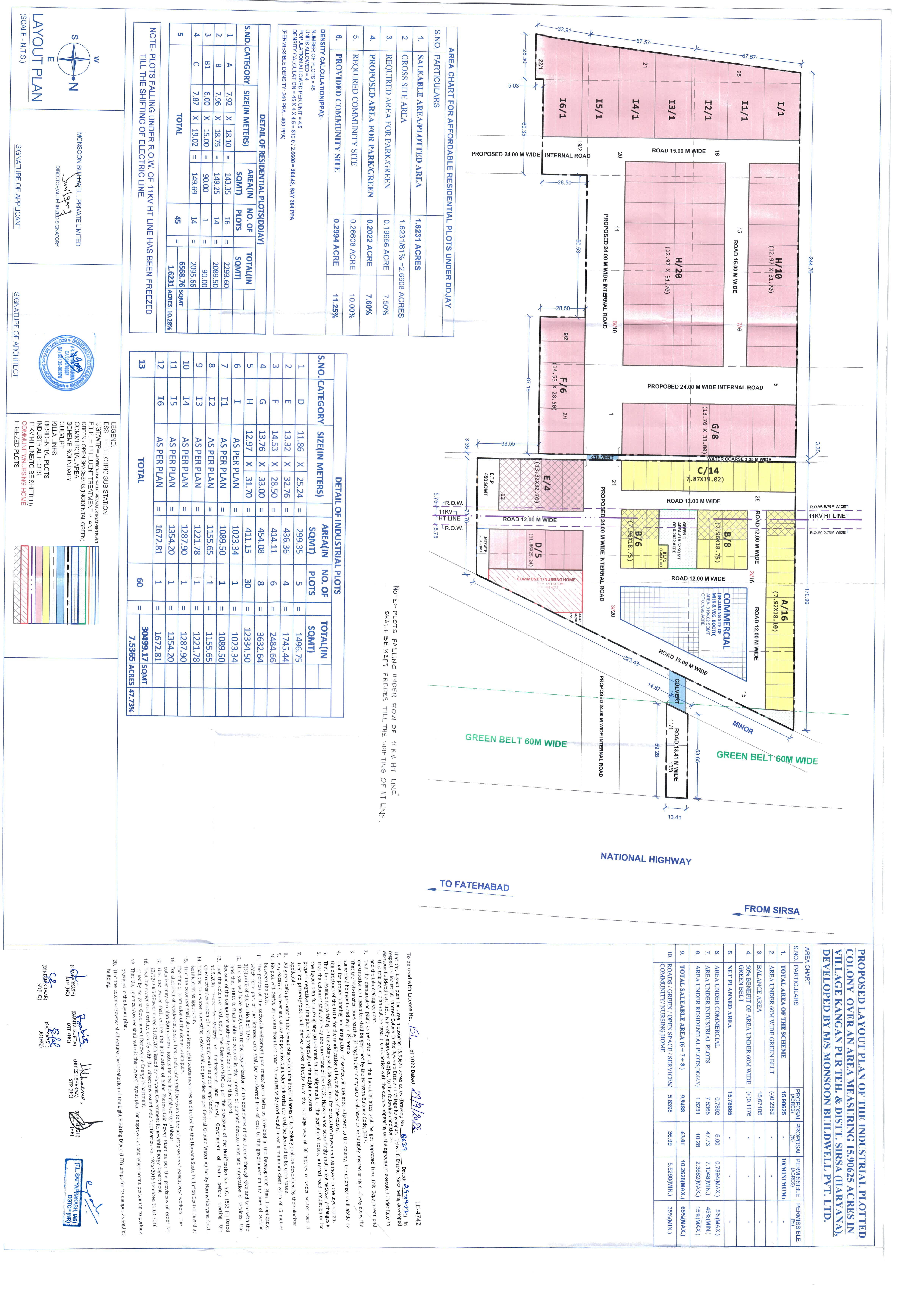 Remarks: Yet to be prepared / Submitted to HUDA, Town & Country Planning Department/ as per project report etc. (Annex relevant documents showing costing details etc. in folder C)