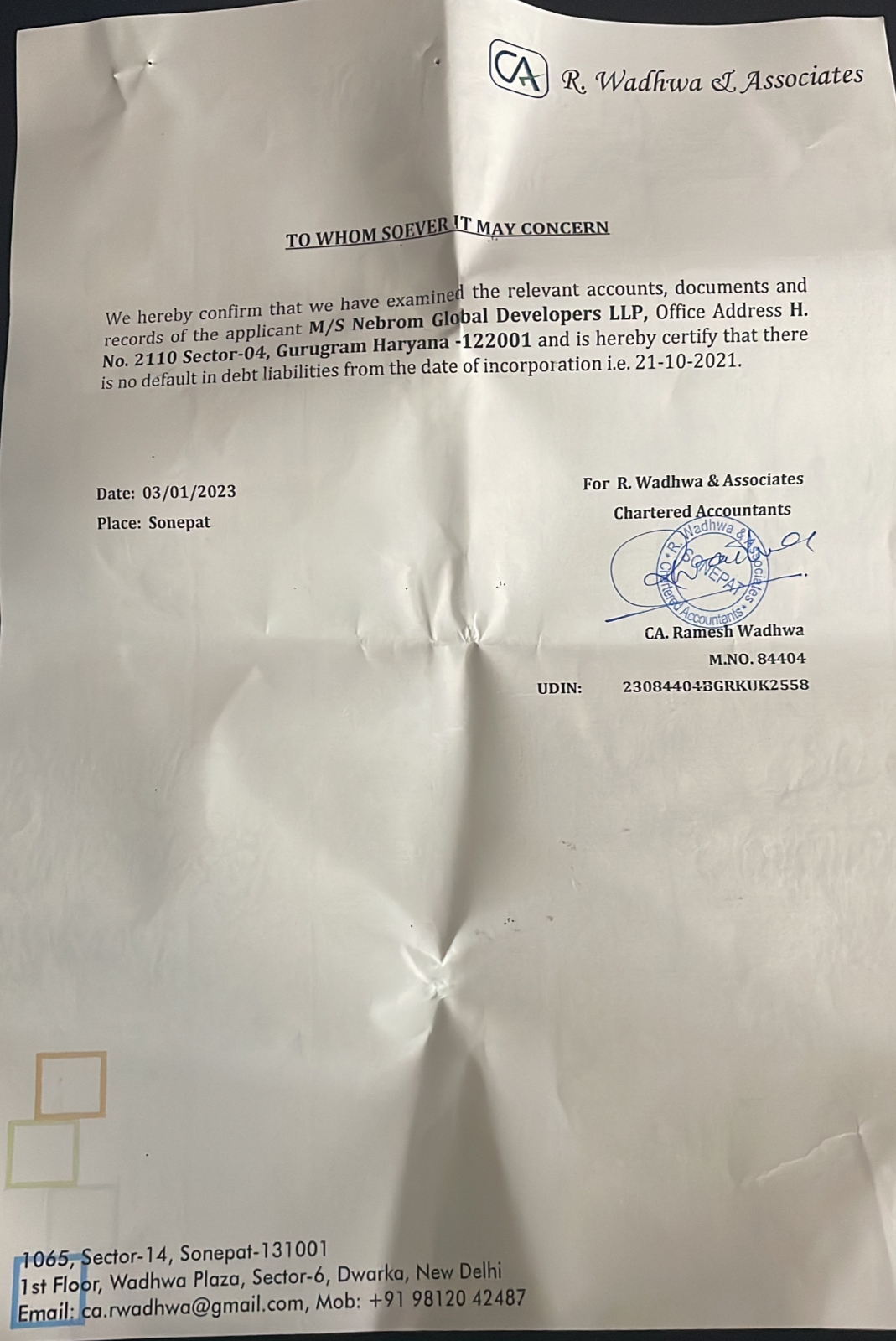 2 NON DEFAULT CERTIFICATE FROM A CHARTERED ACCOUNTANT 11-01-2023 View Document