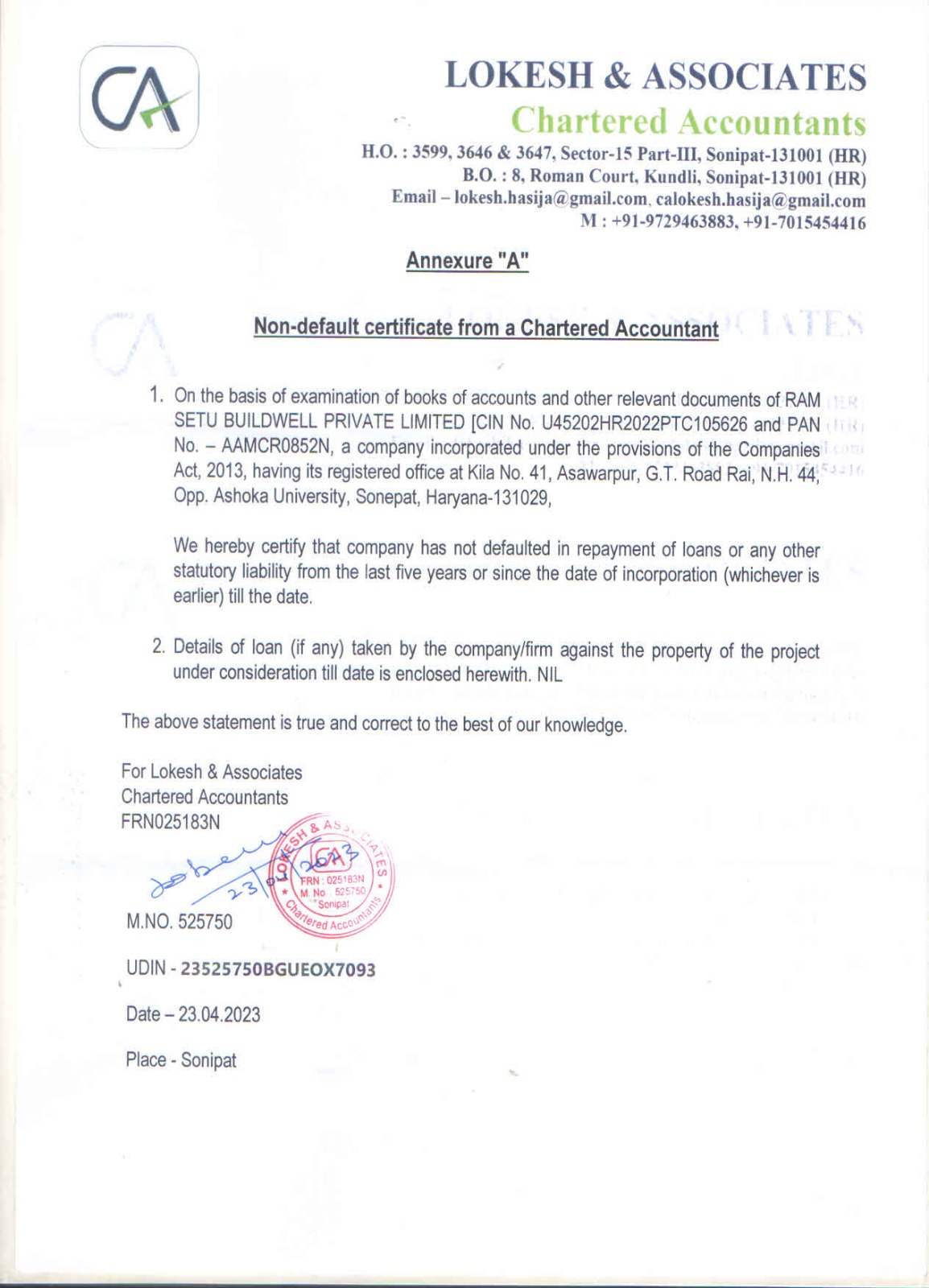 Address VPO RATHDHANA, TEHSIL & DISTRICT SONIPAT, HARYANA