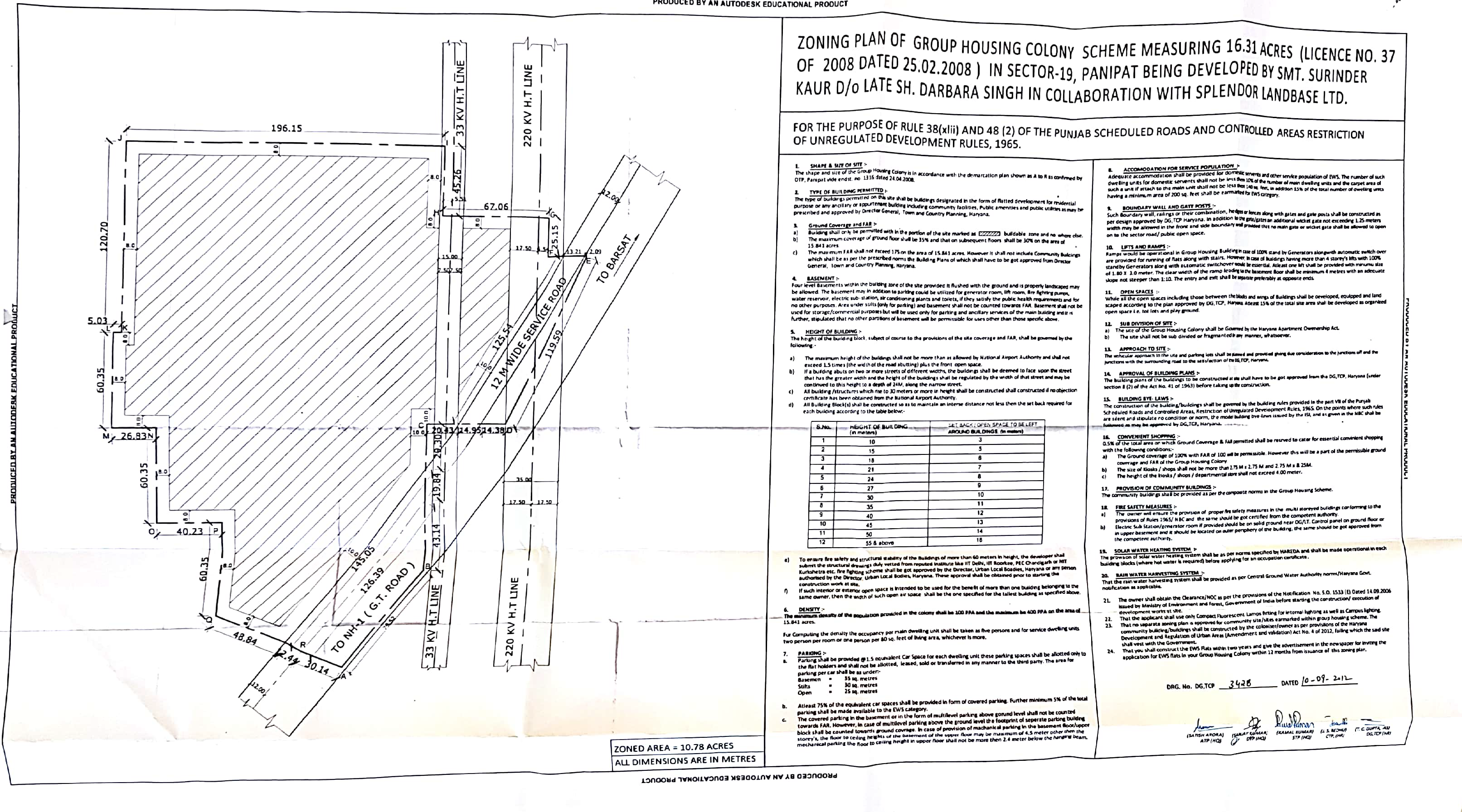 Remarks: Yet to be prepared / Submitted to HUDA, Town & Country Planning Department/ as per project report etc. (Annex relevant documents showing costing details etc. in folder C)