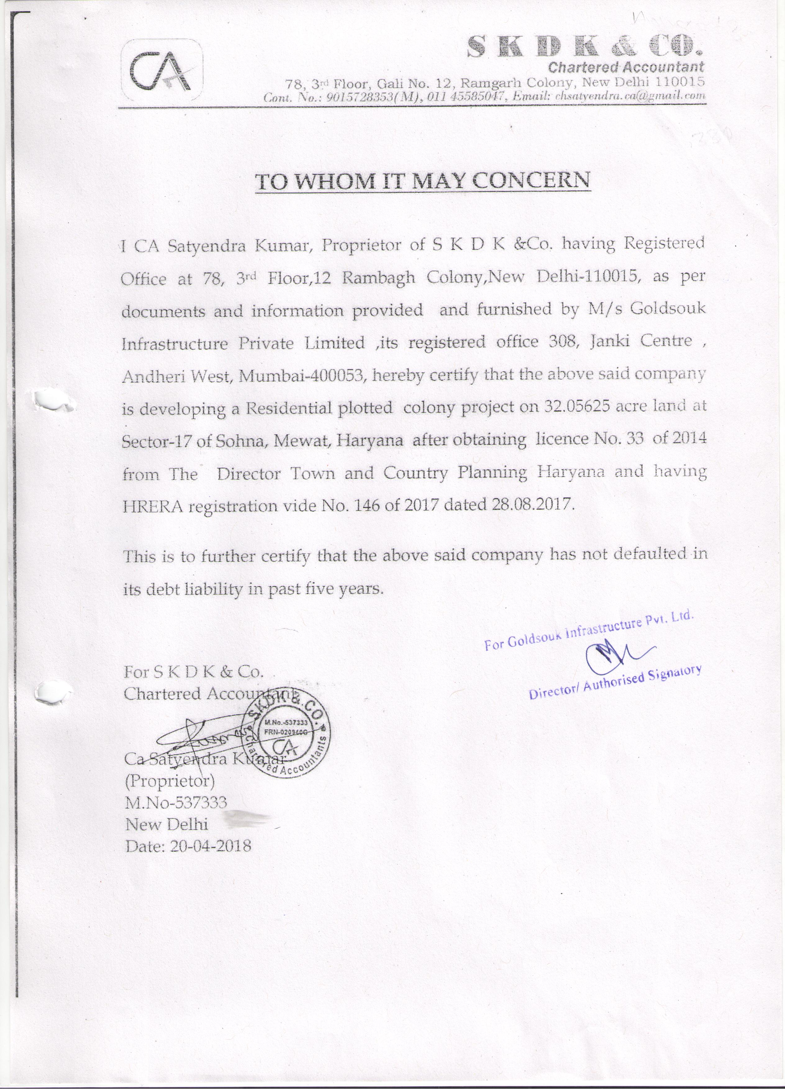 GOLD SOUK GOLF LINK 32.05625 ACRE RESIDENTIAL PLOTTED COLONY