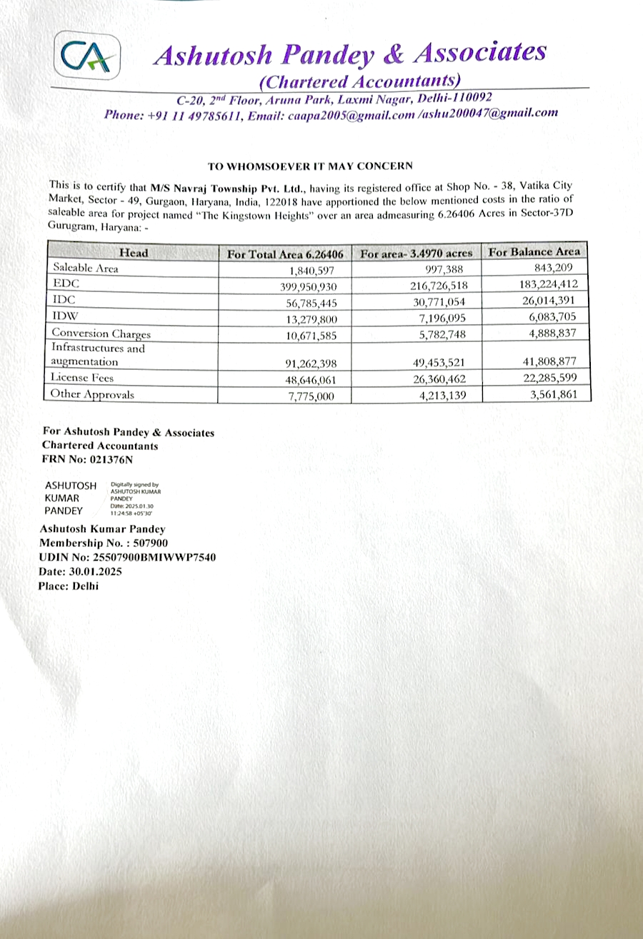Remarks: Yet to be prepared / Submitted to HUDA, Town & Country Planning Department/ as per project report etc. (Annex relevant documents showing costing details etc. in folder C)