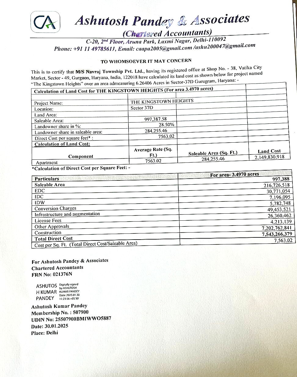 As per sub-rule(2) of rule 3 of the Haryana Real Estate (Regulation and Development) Rules,2017, the fee for registration of the project as has been calculated as follows: