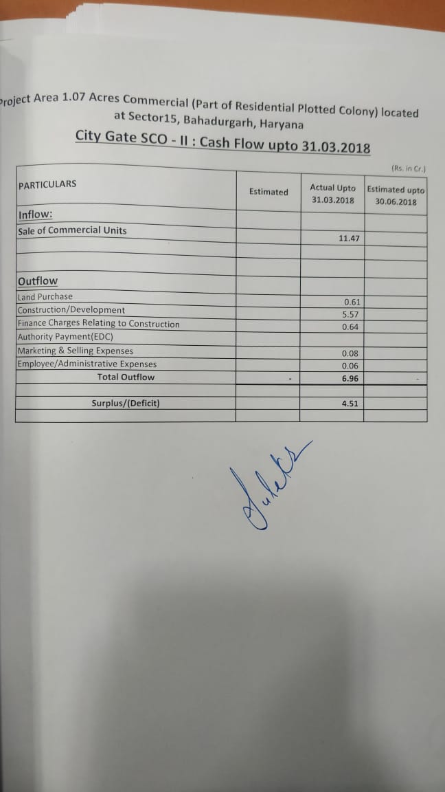 Remarks: Yet to be prepared / Submitted to HUDA, Town & Country Planning Department/ as per project report etc. (Annex relevant documents showing costing details etc. in folder C)