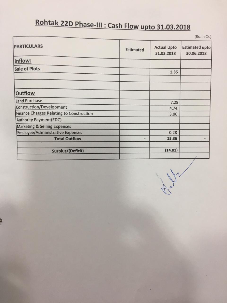 Remarks: Yet to be prepared / Submitted to HUDA, Town & Country Planning Department/ as per project report etc. (Annex relevant documents showing costing details etc. in folder C)