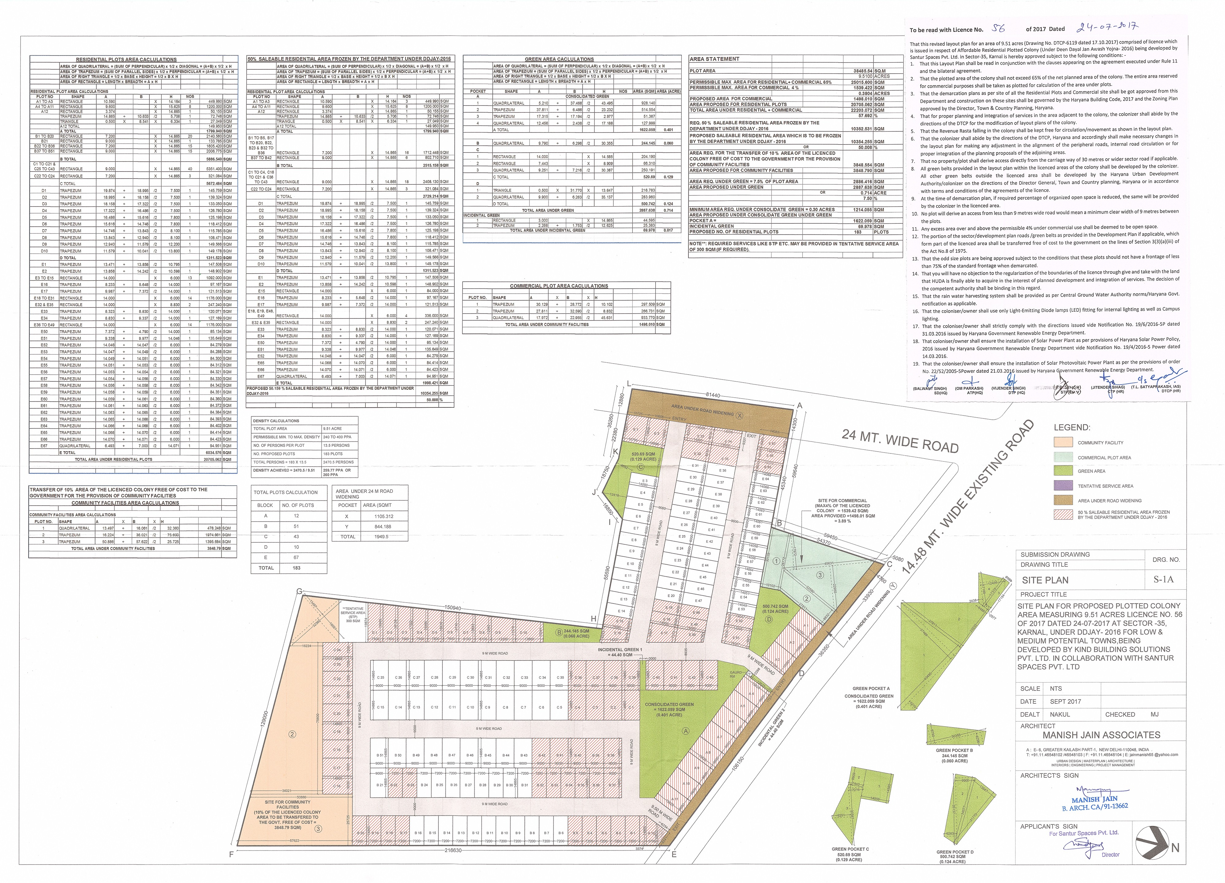 Remarks: Yet to be prepared / Submitted to HUDA, Town & Country Planning Department/ as per project report etc. (Annex relevant documents showing costing details etc. in folder C)