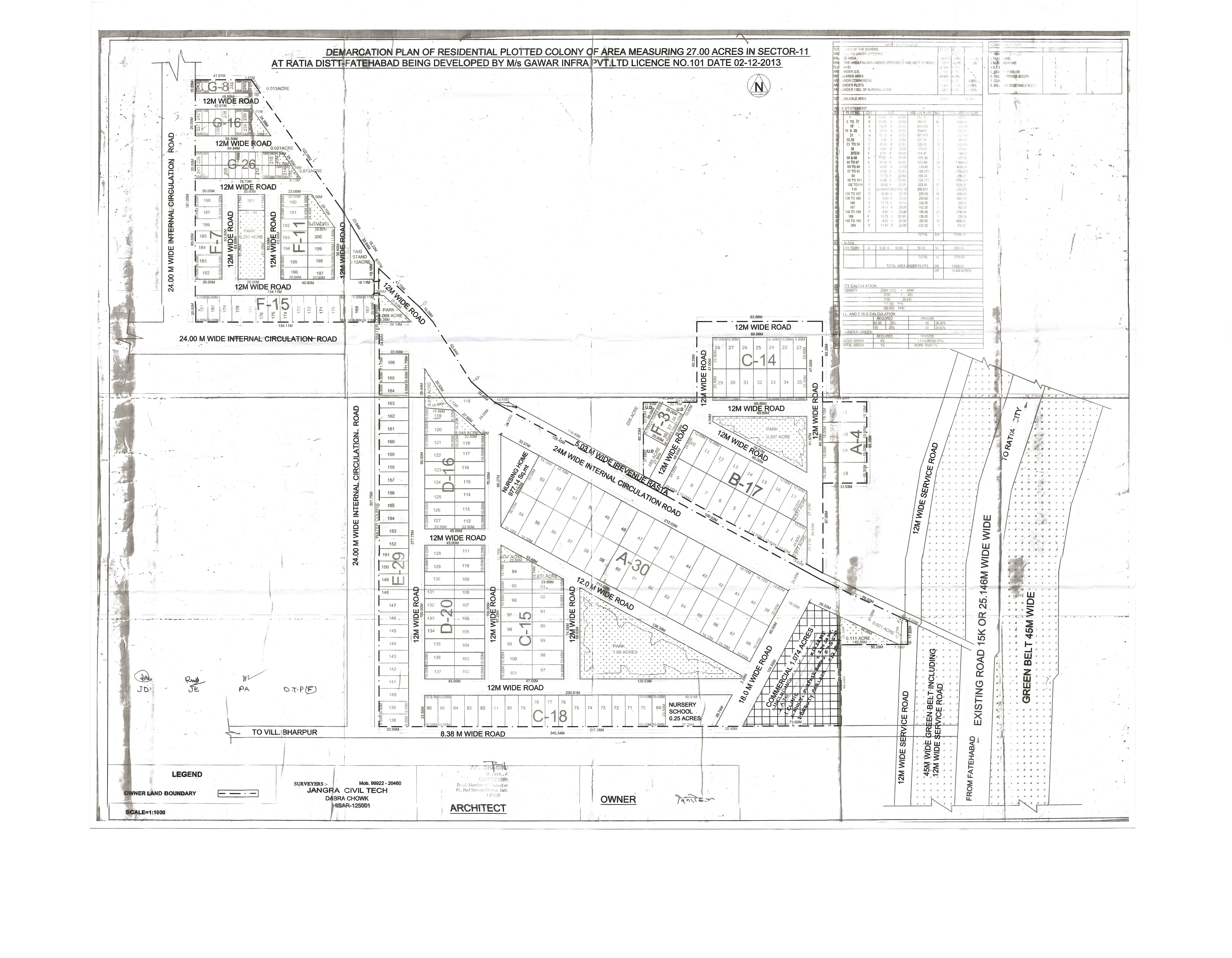 Remarks: Yet to be prepared / Submitted to HUDA, Town & Country Planning Department/ as per project report etc. (Annex relevant documents showing costing details etc. in folder C)