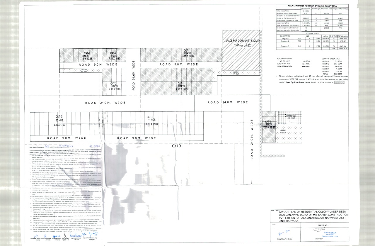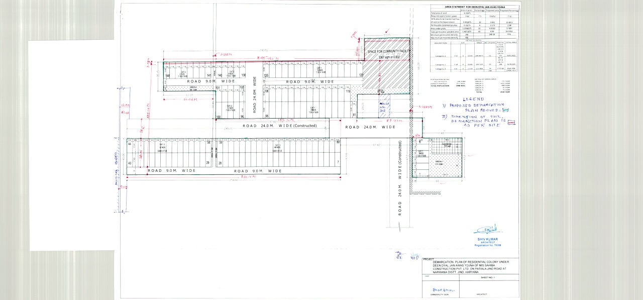 Remarks: Yet to be prepared / Submitted to HUDA, Town & Country Planning Department/ as per project report etc. (Annex relevant documents showing costing details etc. in folder C)