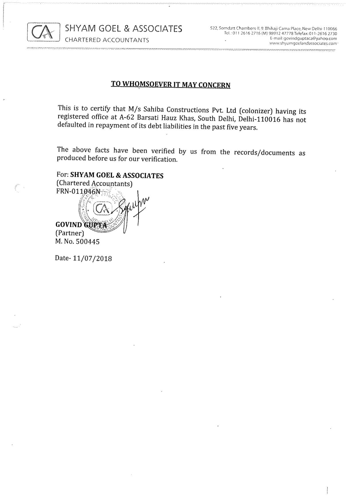 CERTIFICATE FROM A CHARTERED ACCOUNTANT CERTIFYING THAT THE INFORMSTION PROVIDED BY THE APPLICANT IN FORM REP-1-C-X IS CORRECT AS PER THE BOOKS OF ACCOUNTS/ BALANCE SHEET OF THE APPLICANT
