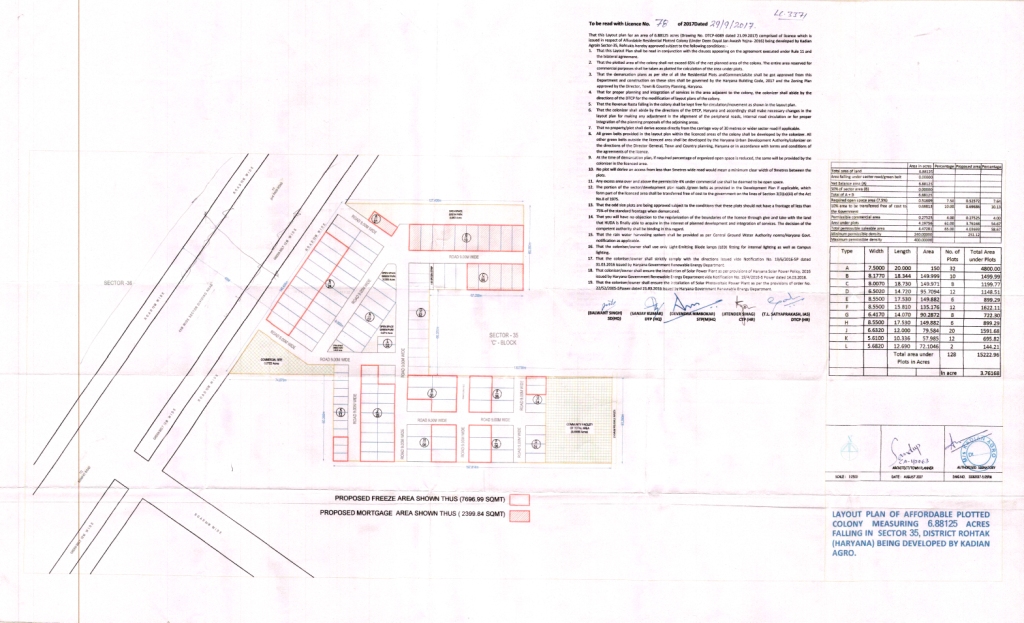 Remarks: Yet to be prepared / Submitted to HUDA, Town & Country Planning Department/ as per project report etc. (Annex relevant documents showing costing details etc. in folder C)