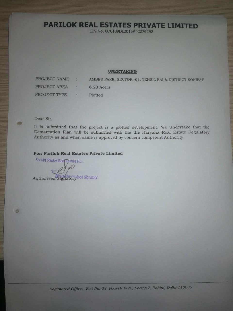 As per sub-rule(2) of rule 3 of the Haryana Real Estate (Regulation and Development) Rules,2017, the fee for registration of the project as has been calculated as follows: