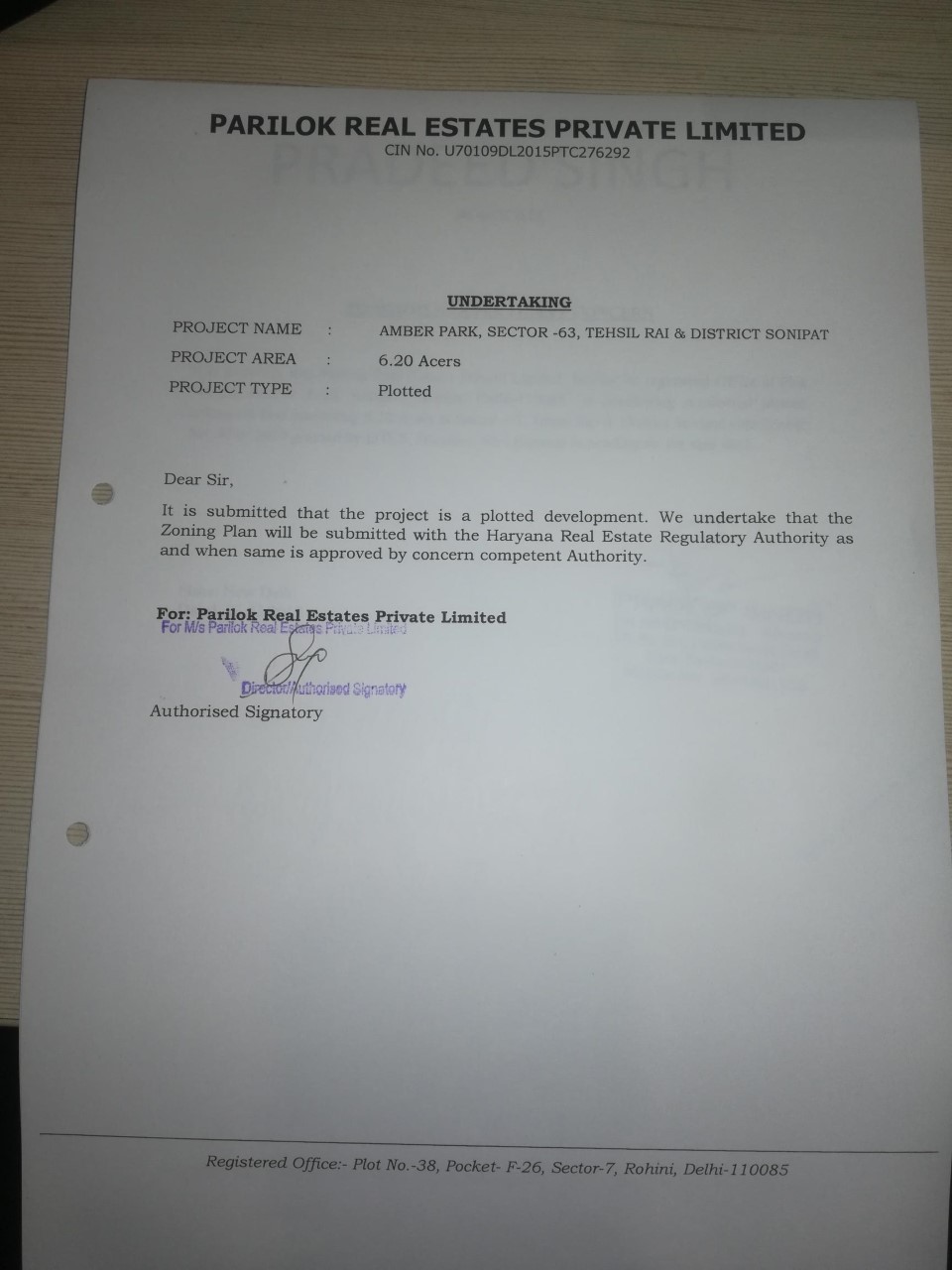 Remarks: Yet to be prepared / Submitted to HUDA, Town & Country Planning Department/ as per project report etc. (Annex relevant documents showing costing details etc. in folder C)