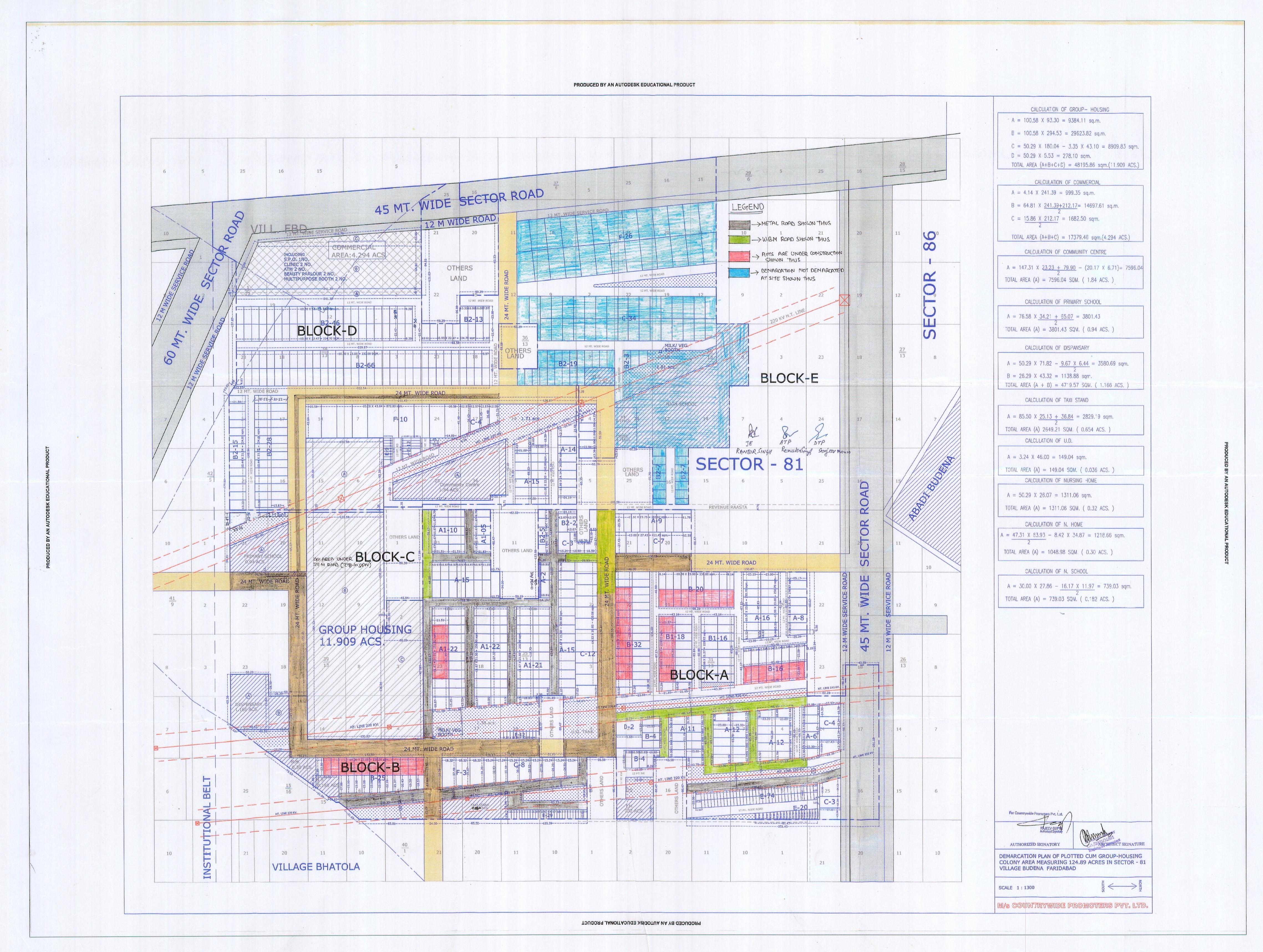 Remarks: Yet to be prepared / Submitted to HUDA, Town & Country Planning Department/ as per project report etc. (Annex relevant documents showing costing details etc. in folder C)