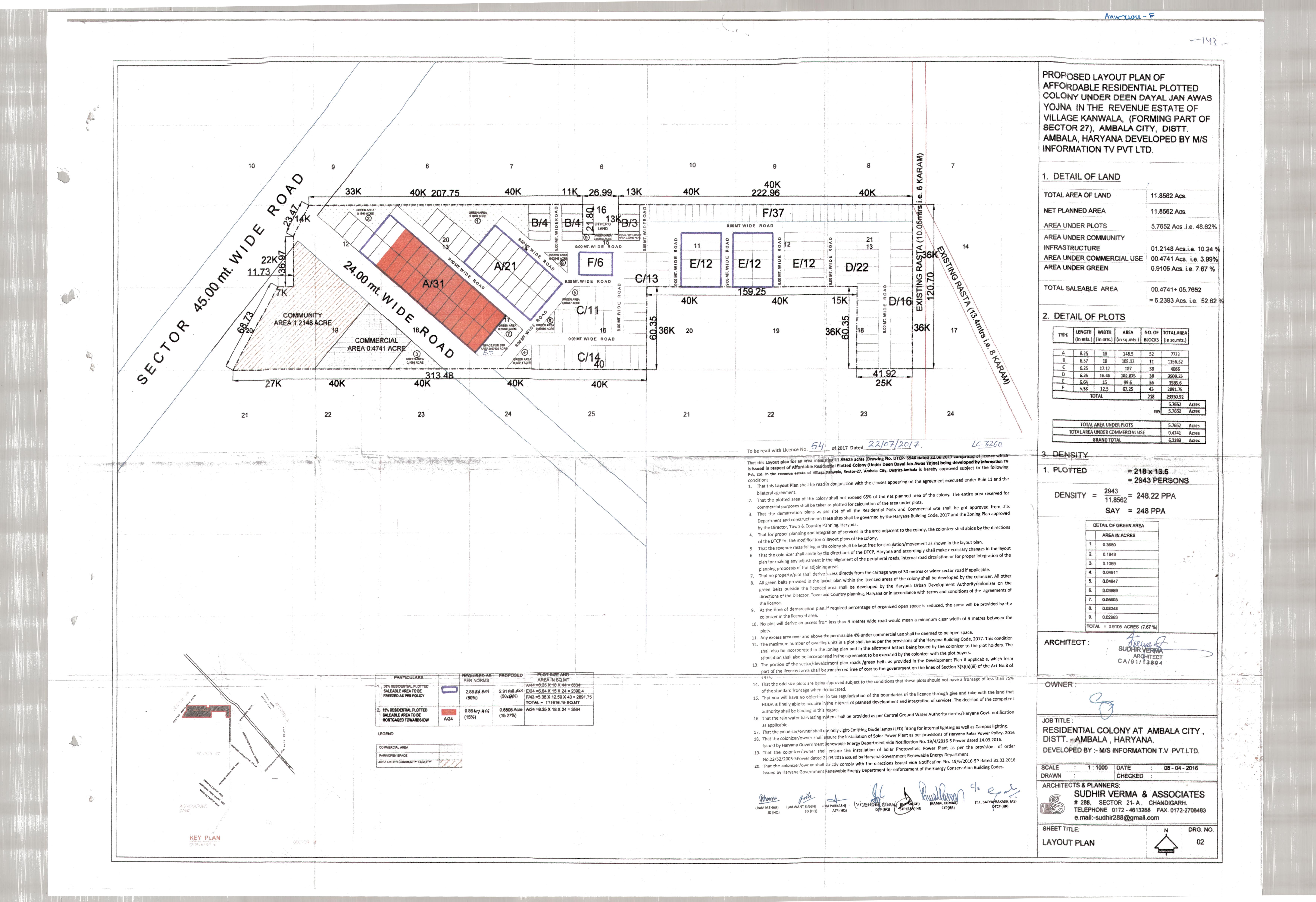 Remarks: Yet to be prepared / Submitted to HUDA, Town & Country Planning Department/ as per project report etc. (Annex relevant documents showing costing details etc. in folder C)
