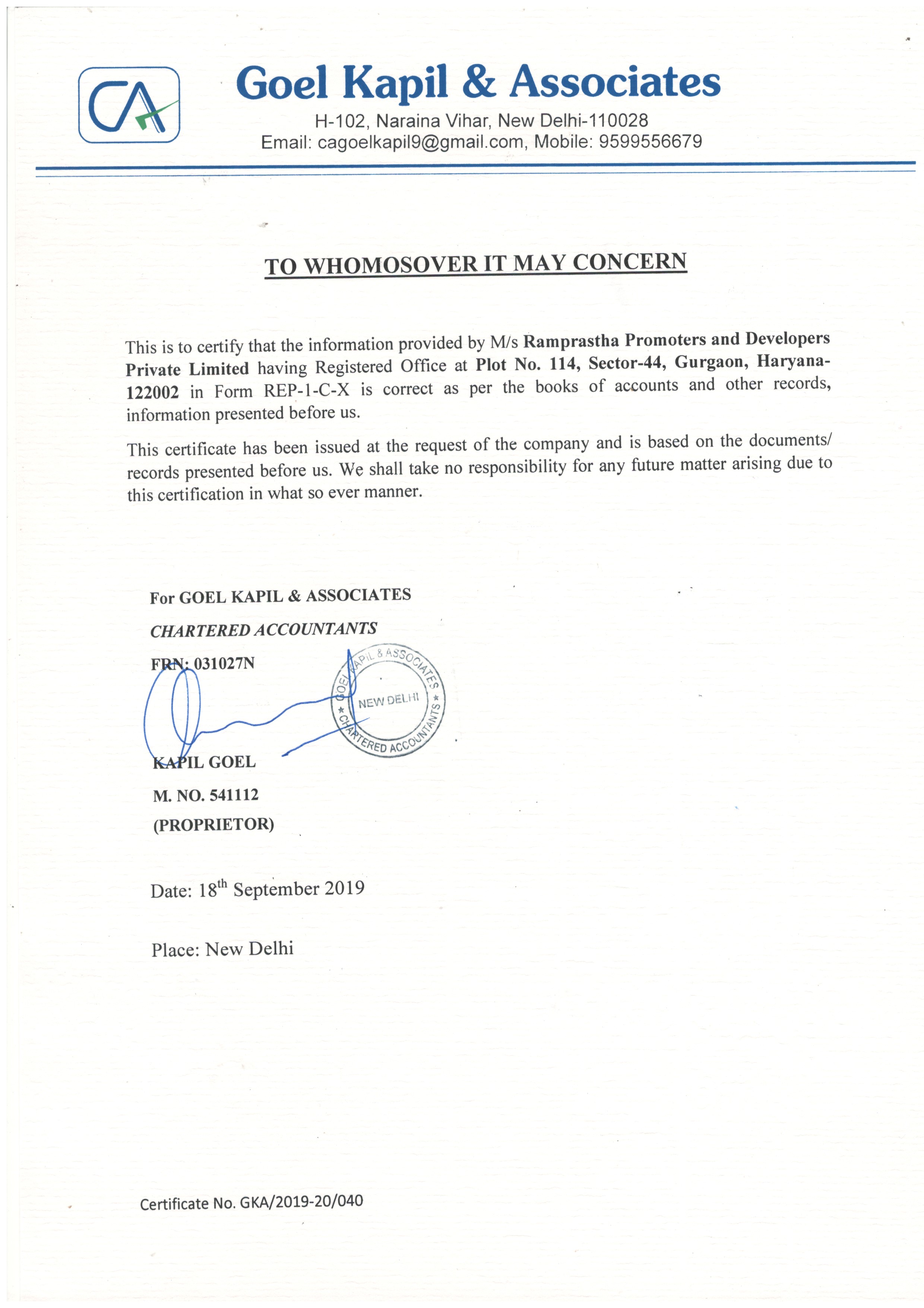 CERTIFICATE FROM A CHARTERED ACCOUNTANT CERTIFYING THAT THE INFORMSTION PROVIDED BY THE APPLICANT IN FORM REP-1-C-X IS CORRECT AS PER THE BOOKS OF ACCOUNTS/ BALANCE SHEET OF THE APPLICANT