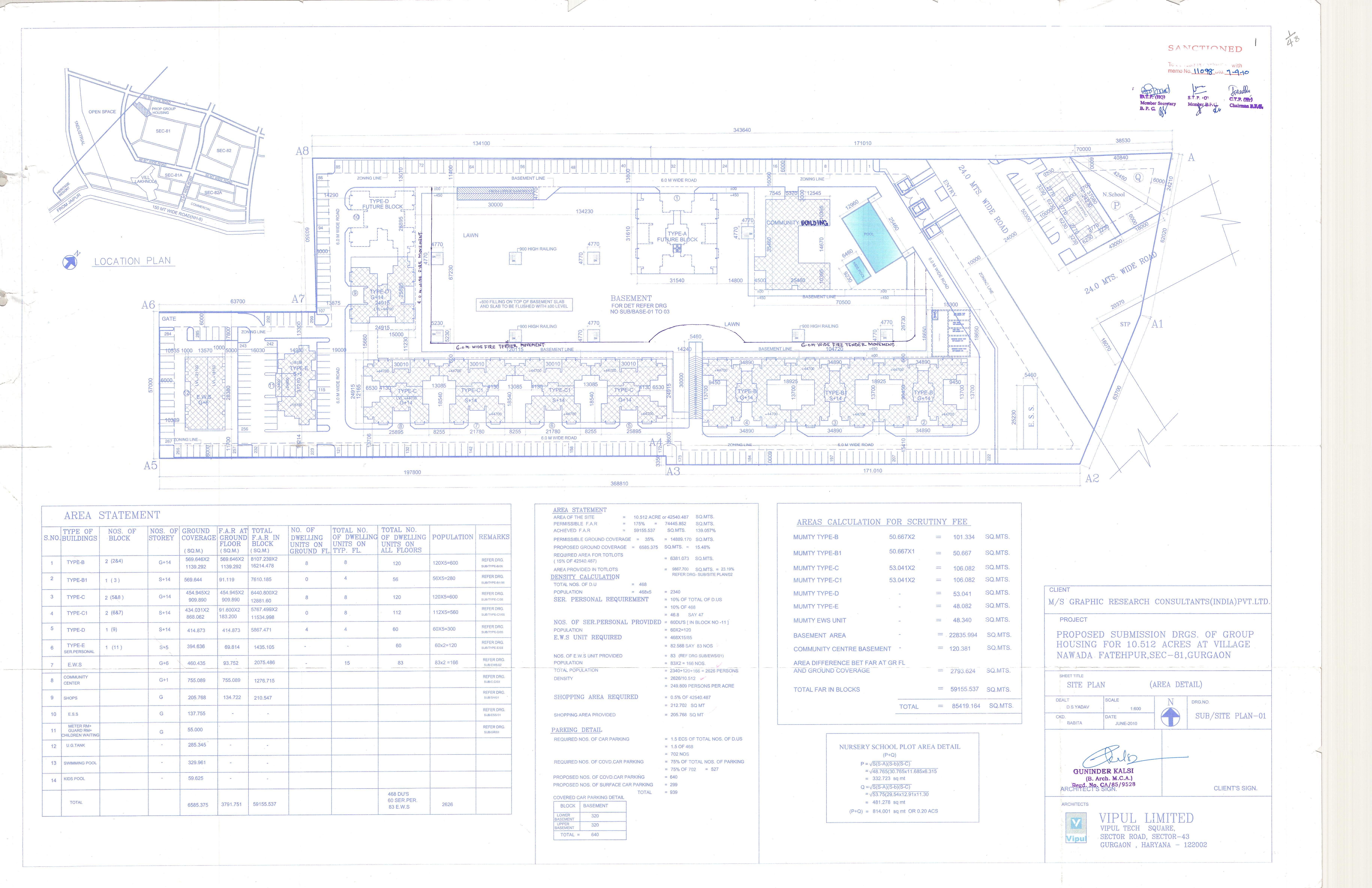 Remarks: Yet to be prepared / Submitted to HUDA, Town & Country Planning Department/ as per project report etc. (Annex relevant documents showing costing details etc. in folder C)