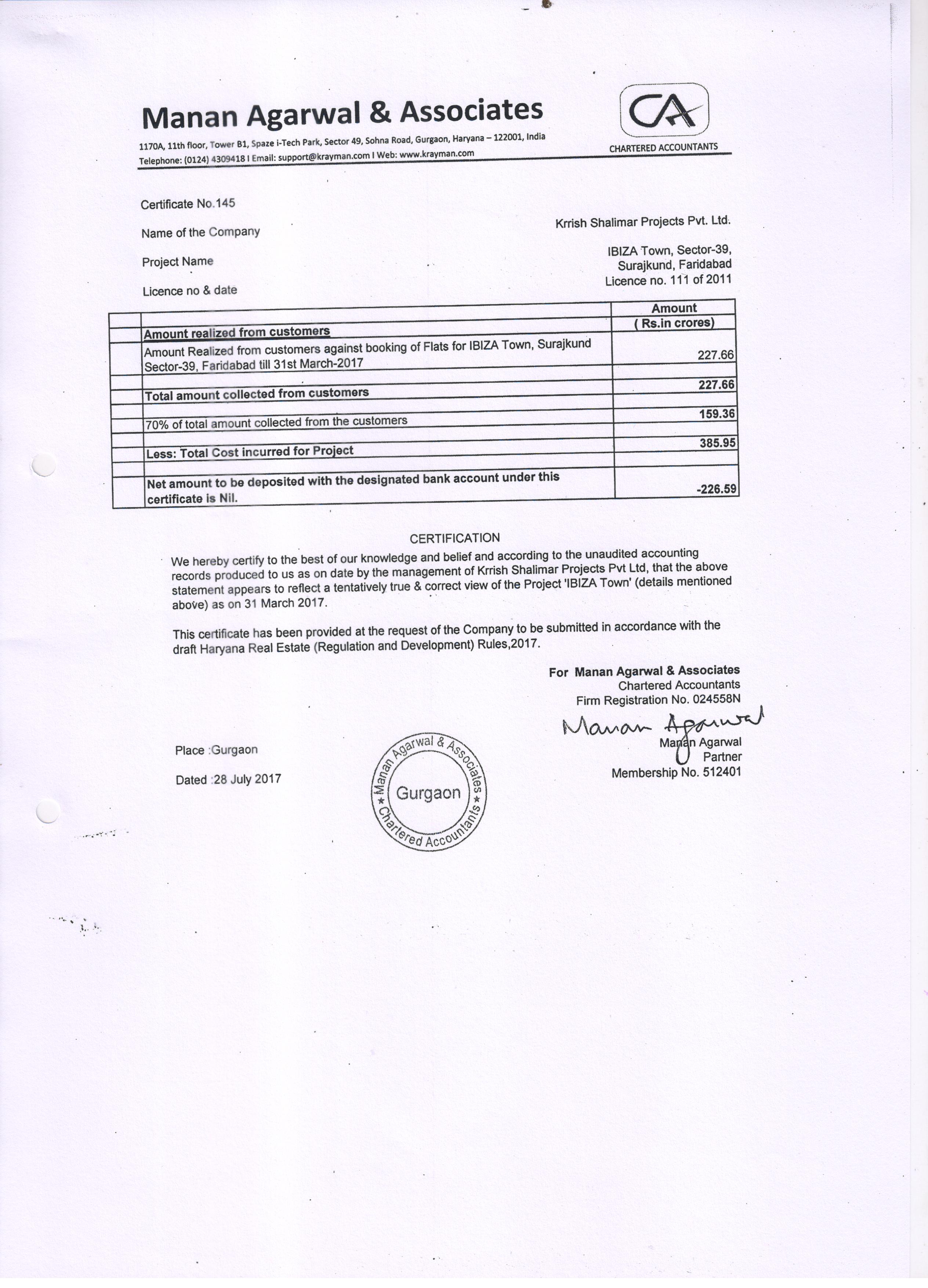 As per sub-rule(2) of rule 3 of the Haryana Real Estate (Regulation and Development) Rules,2017, the fee for registration of the project as has been calculated as follows: