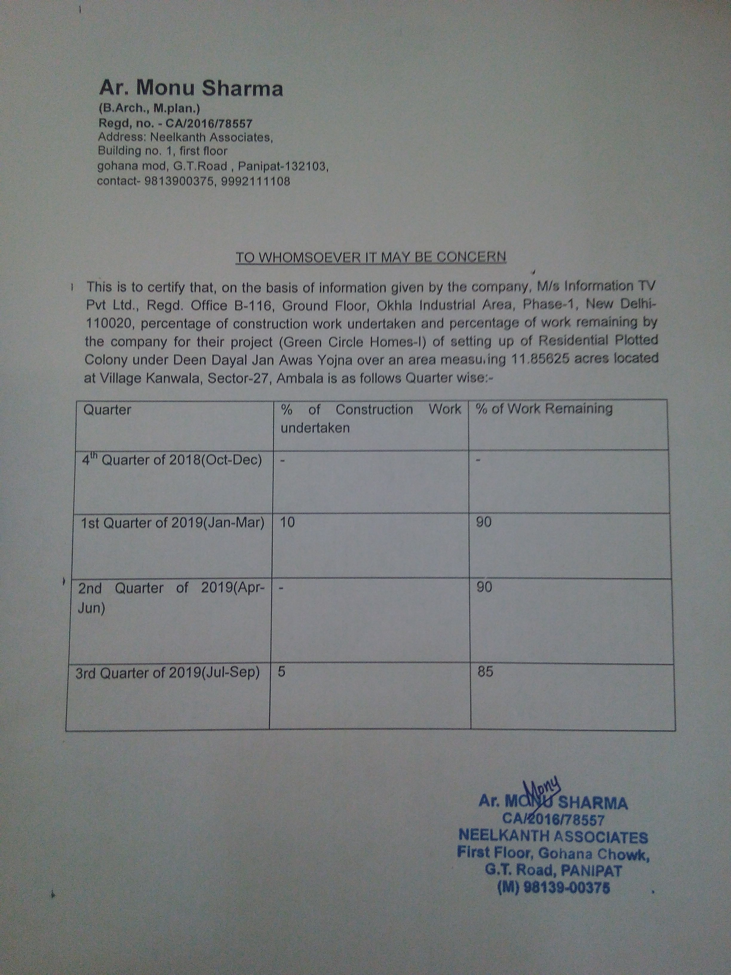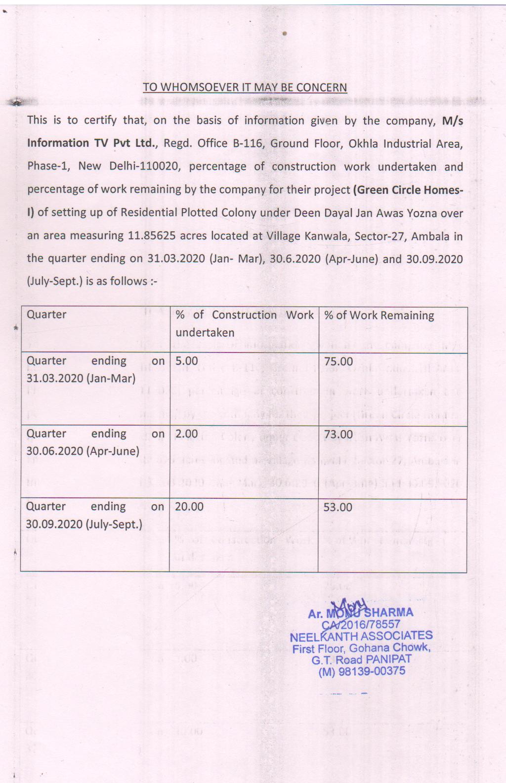 | Plots sold upto the date of Registration | 0 |