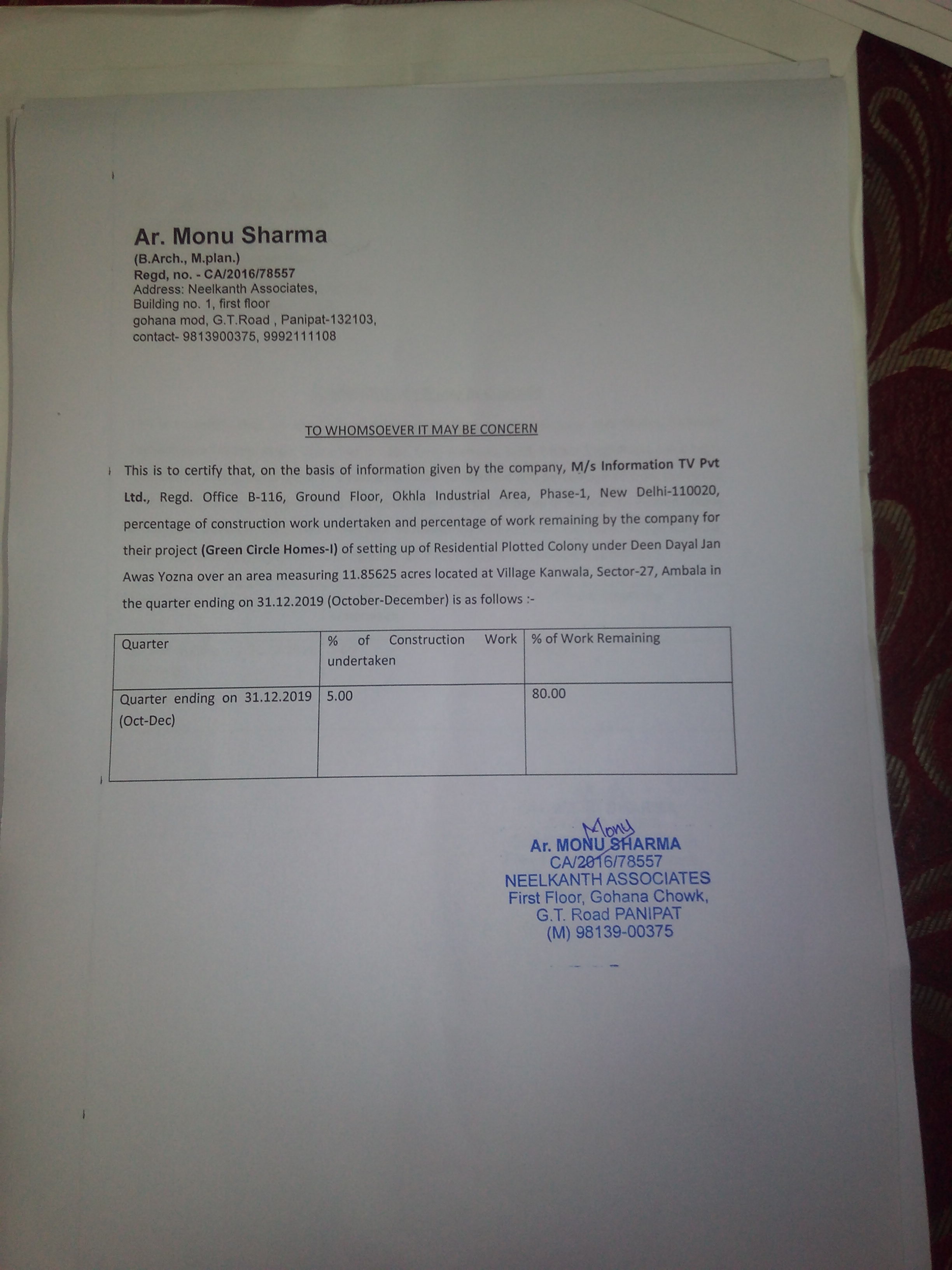 | Project Number : RERA-PKL-589-2019 | ||