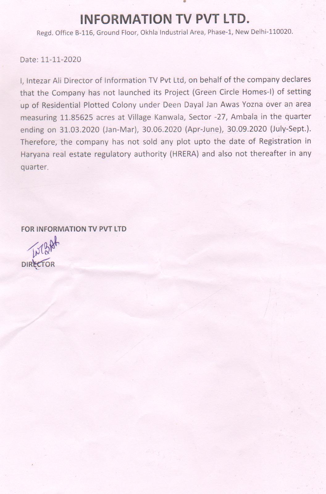 | 2 | Amount collected from allottees against booked plots and/or apartments | 0 |
