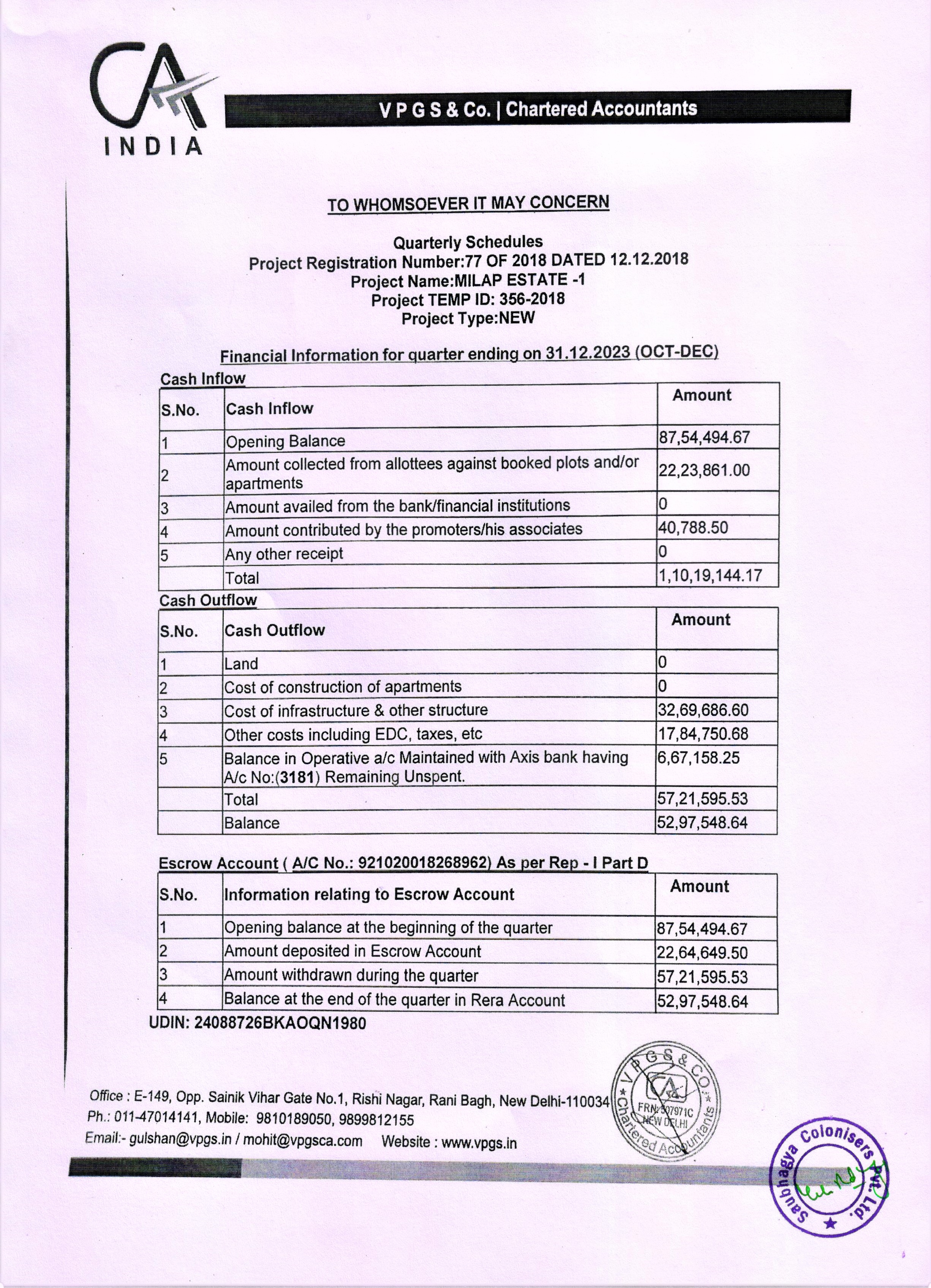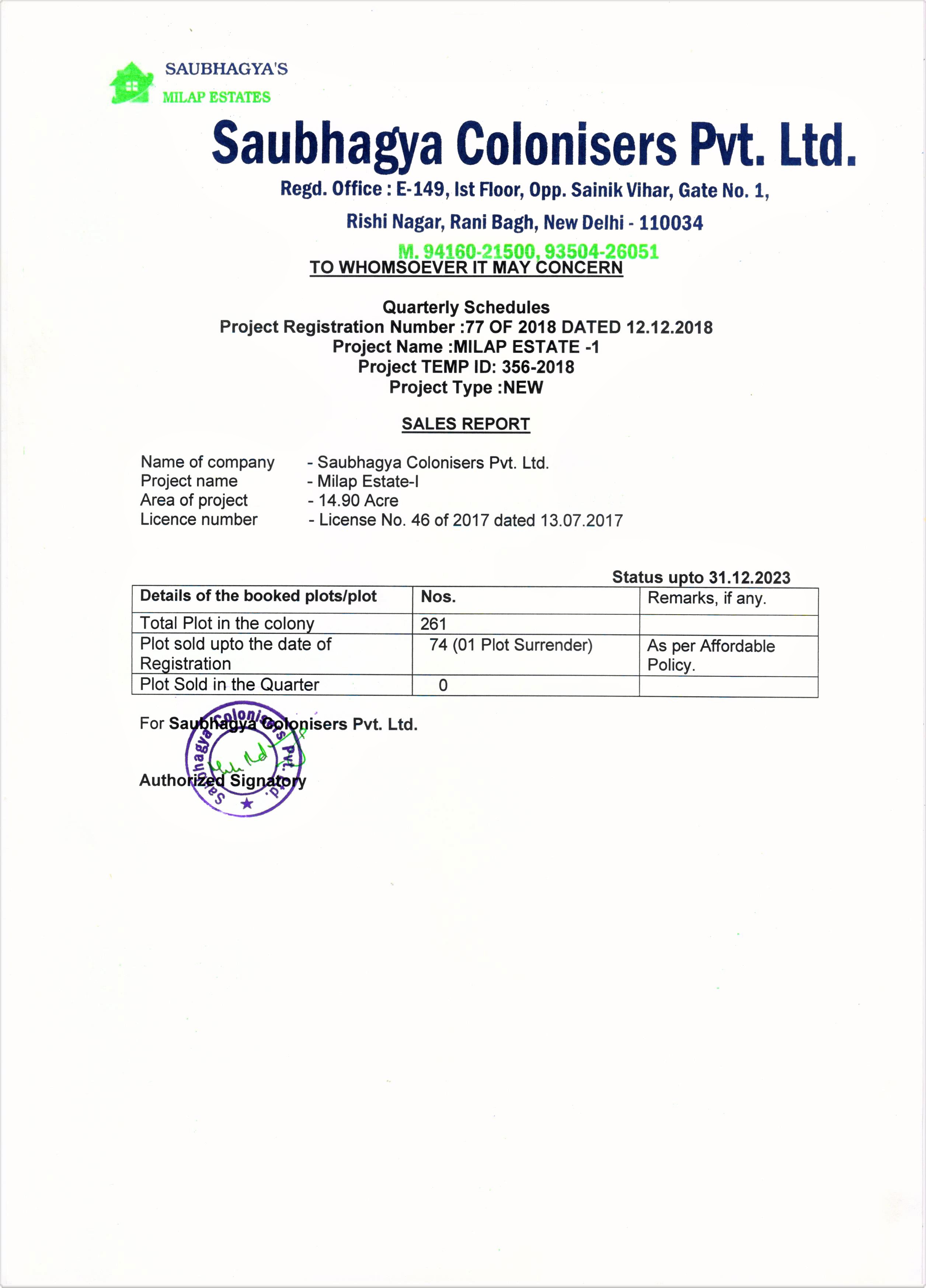 | Project Name : MILAP ESTATE I- 14.90 ACRES | ||