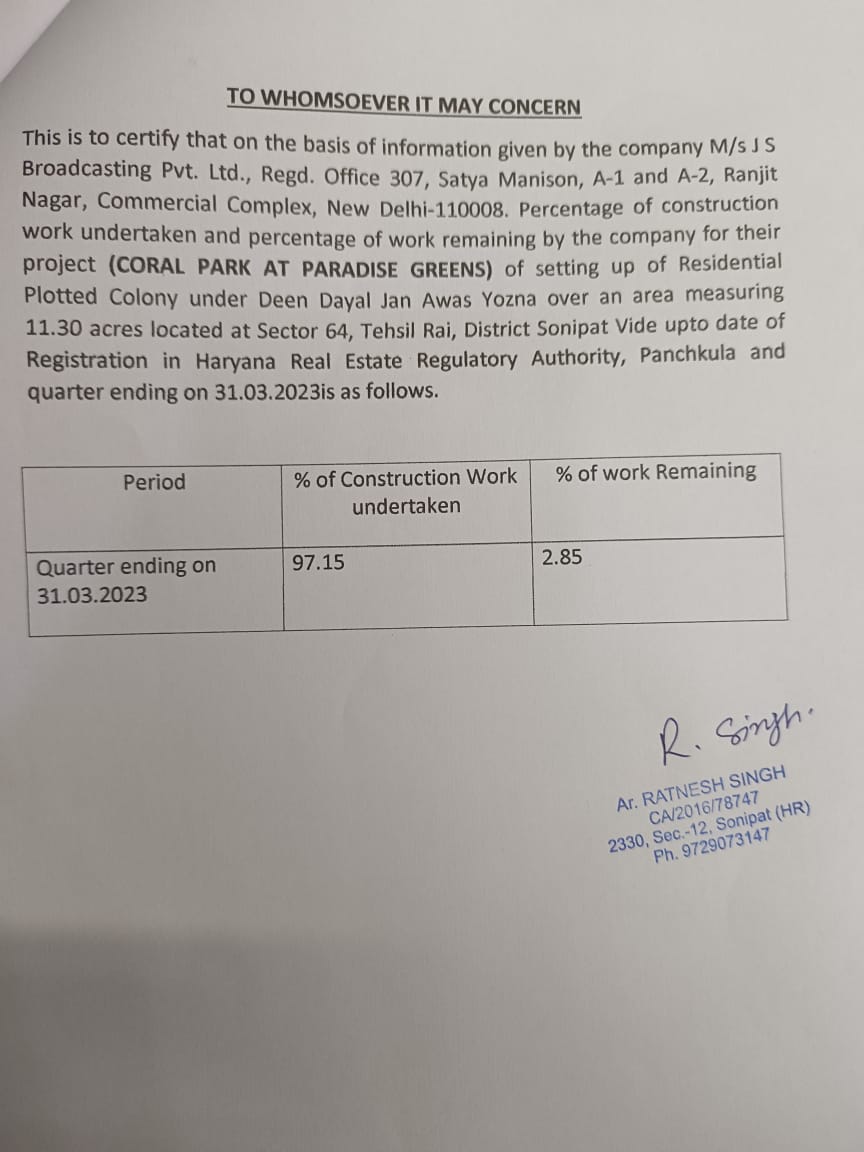 | Project Name : CORAL PARK AT PARADISE GREENS | ||