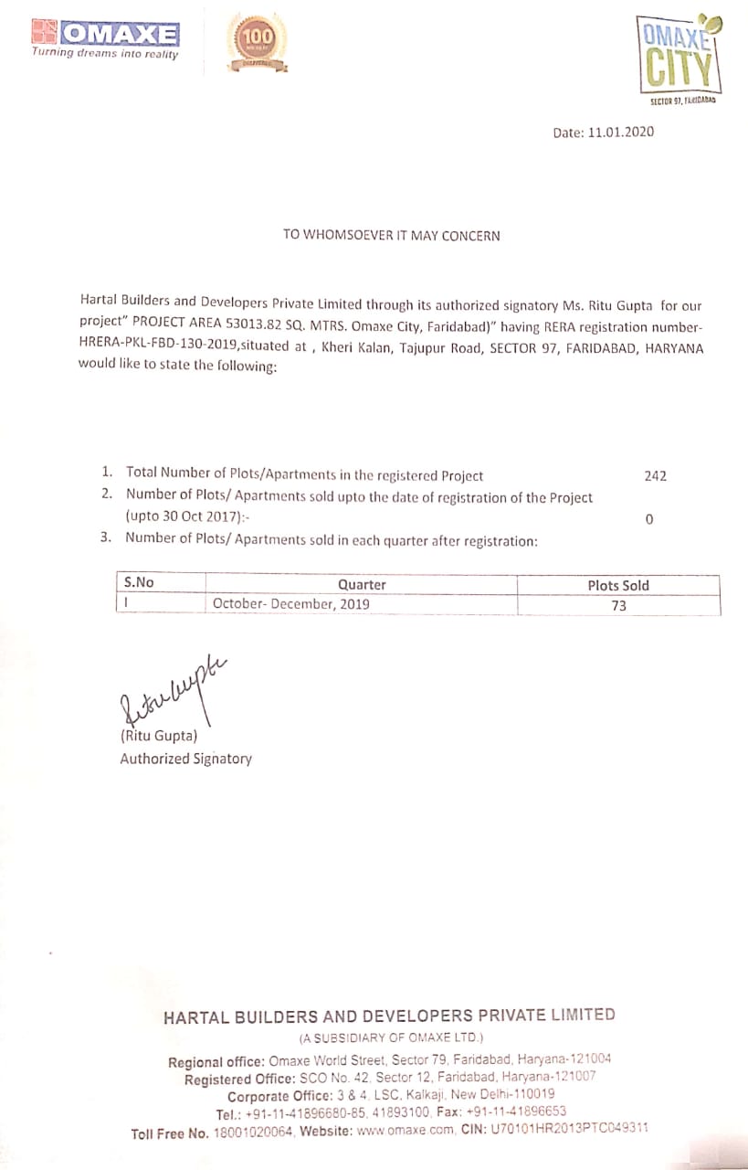 | Plots sold upto the date of Registration | 0 |