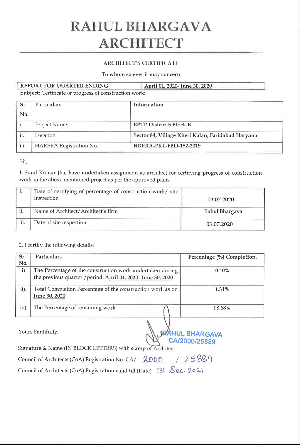 | Project Registration Number : HRERA-PKL-FBD-152-2019 | ||