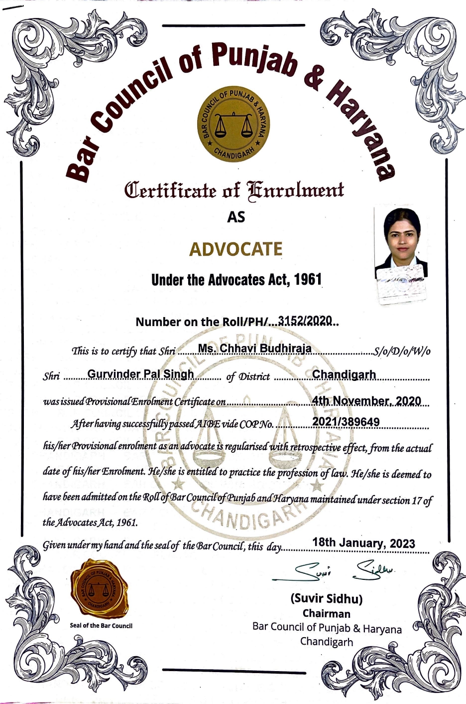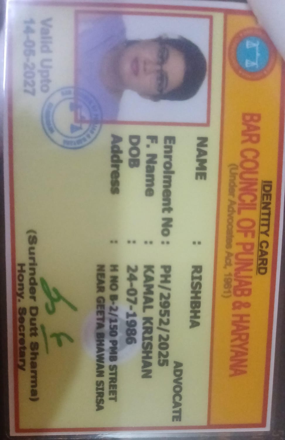 CHAMBER NO.441, 2ND FLOOR ,MULTISTOREY BUILDING DISST. COURTS KURUKSHETRA 136118 |