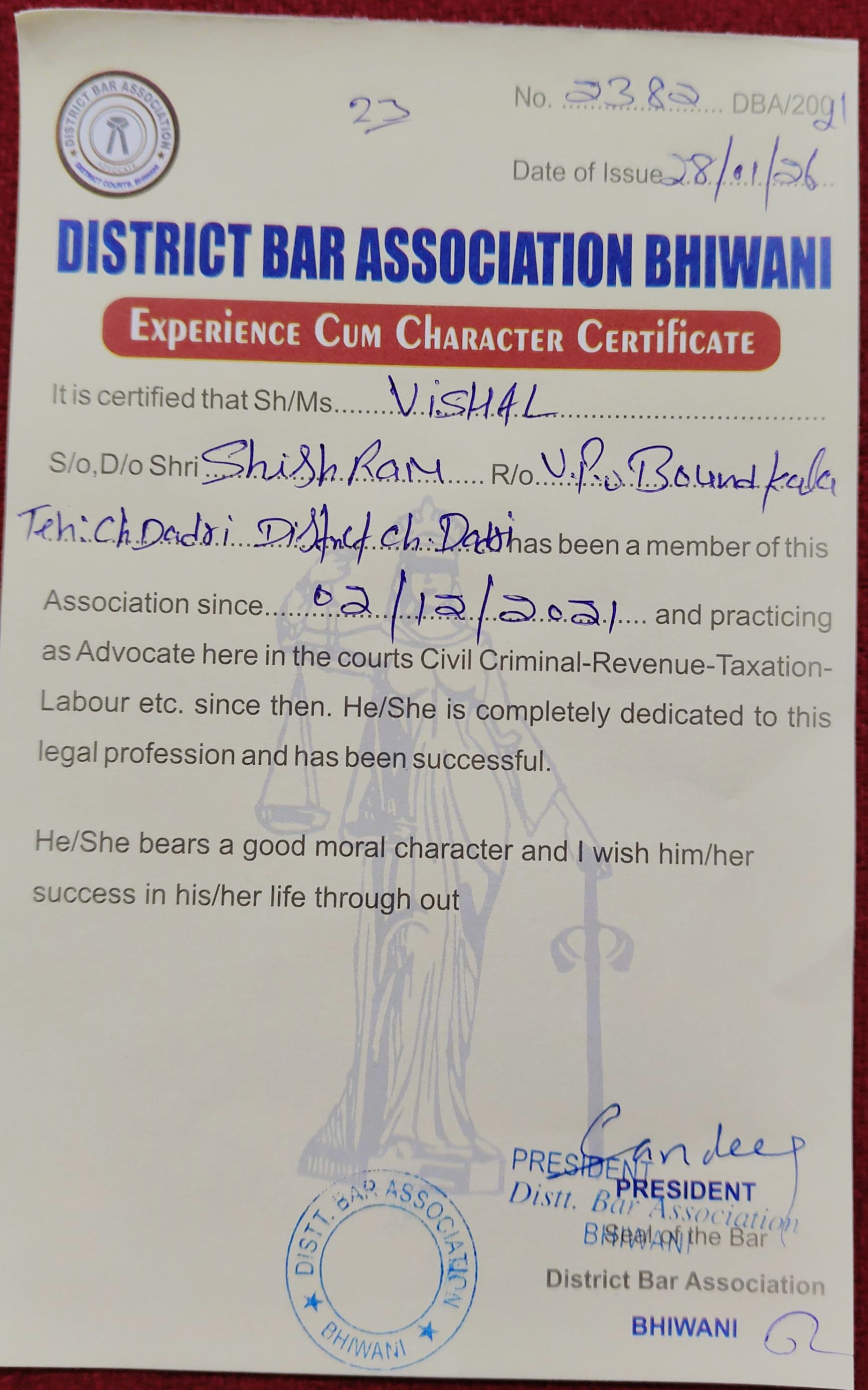 Seat number 27 advocate hall court complex district and session Court gohana road sonepat 131001 |